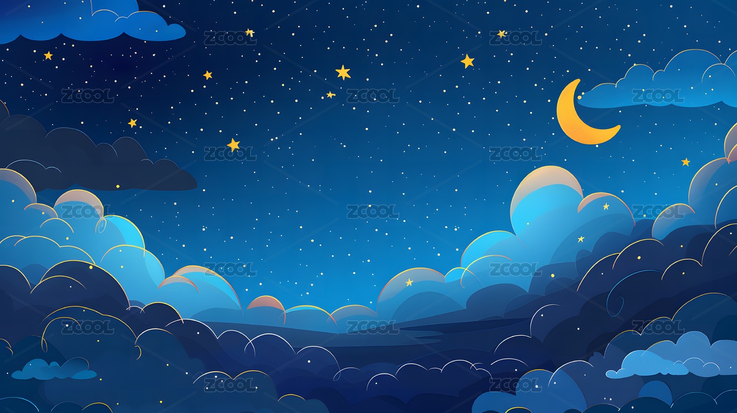 插画风格夜晚的天空