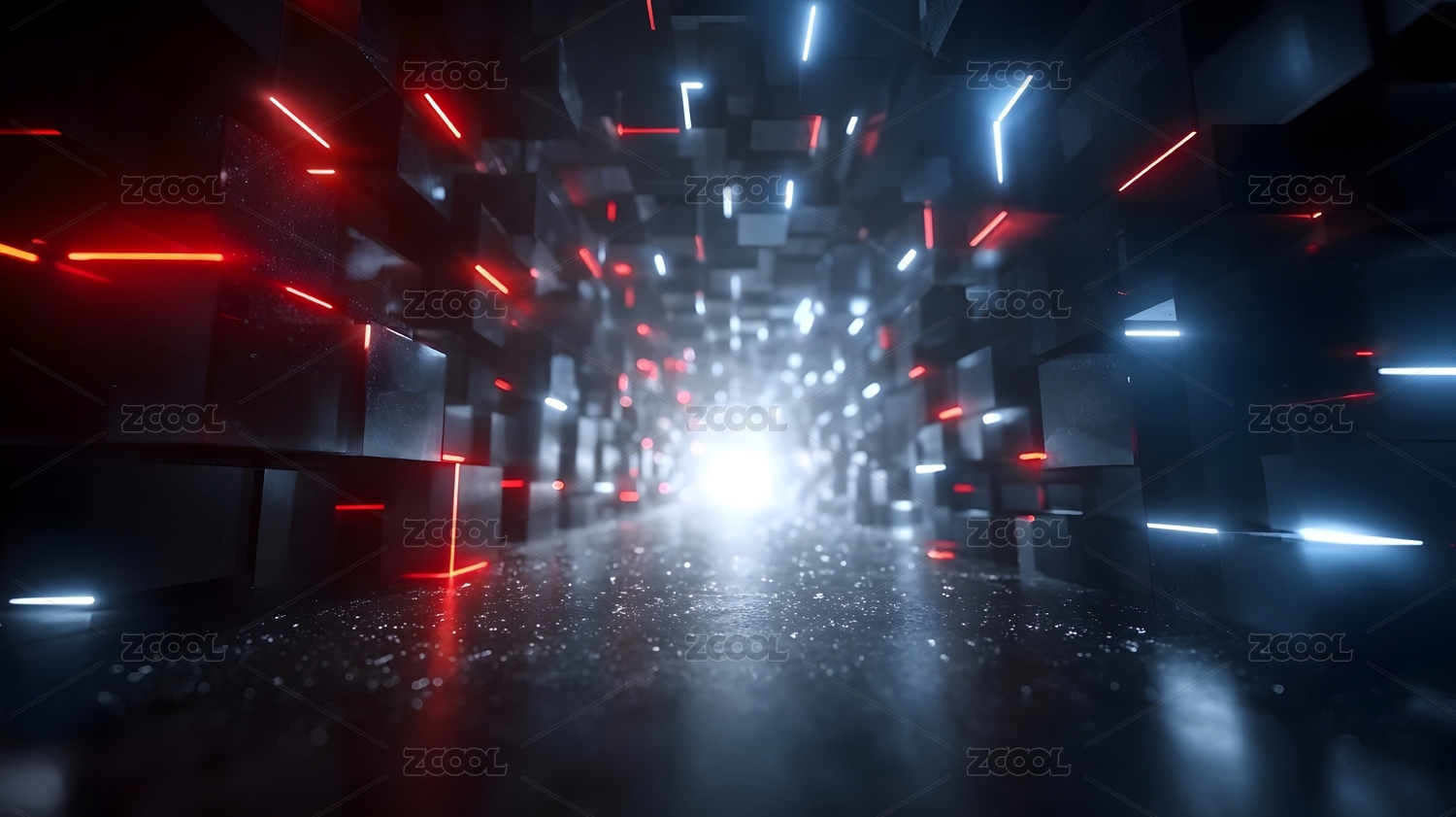 蓝红概念科技立方体发光隧道背景