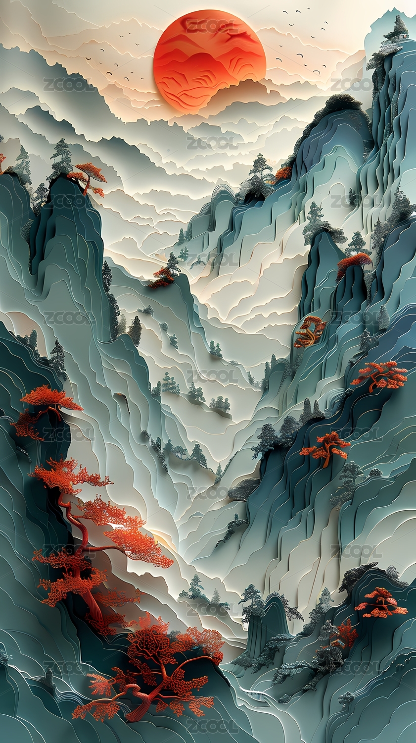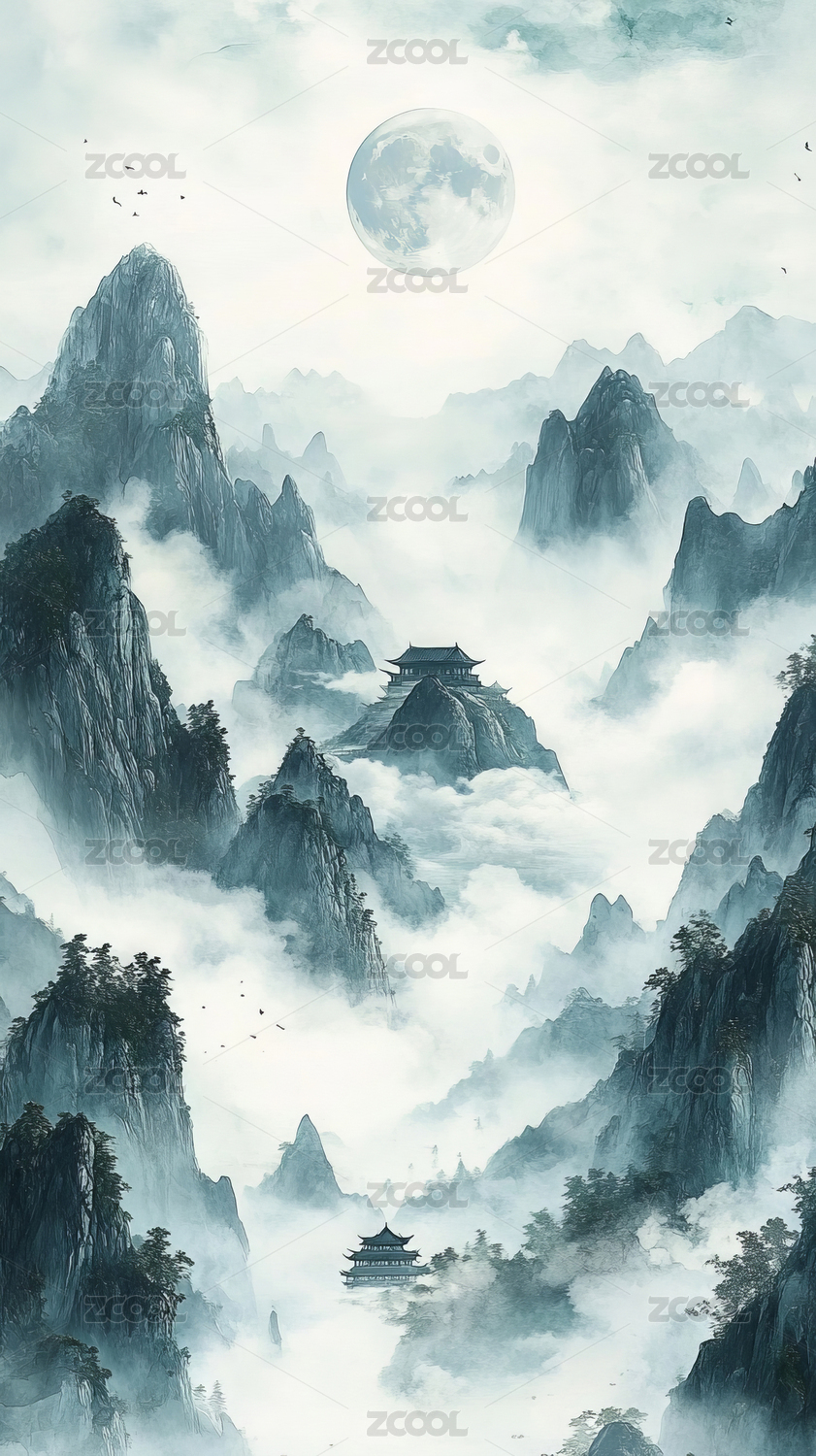 新中式山水风景高端背景素材