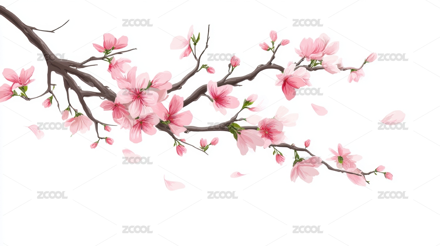 水彩画粉红色桃花枝条