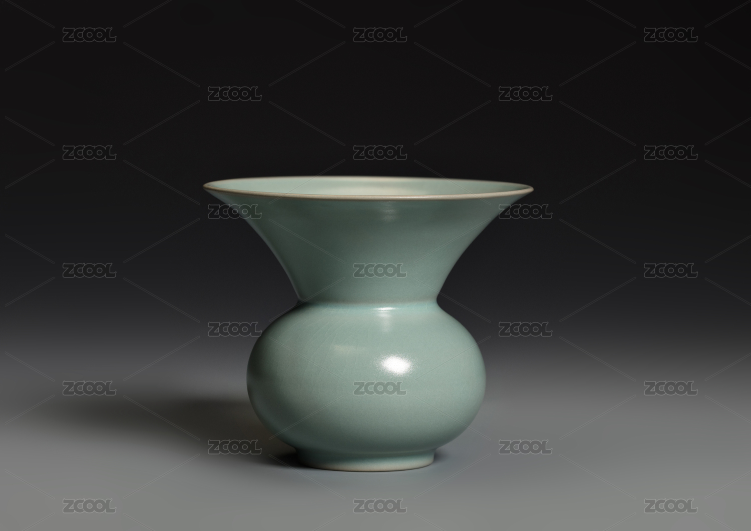 青瓷花瓶精美摆拍呈现传统陶瓷工艺