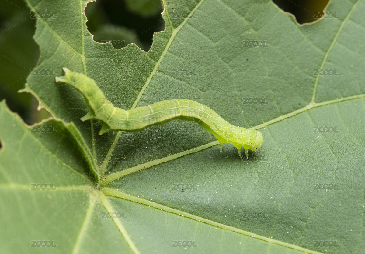 正在啃食树叶的豆青虫