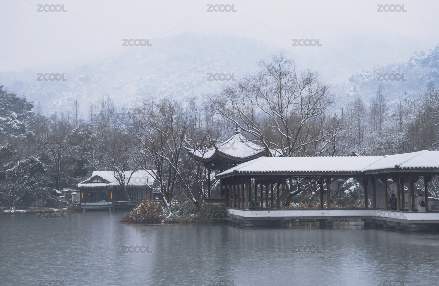 2018年华东地区第一场大雪杭州西湖边银装素裹雪景高清风光大图