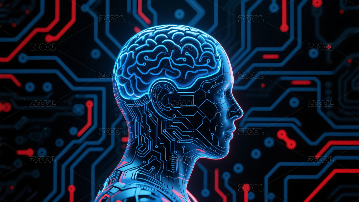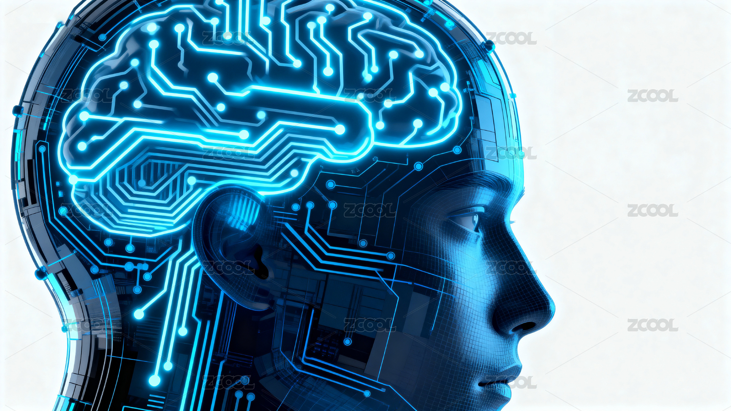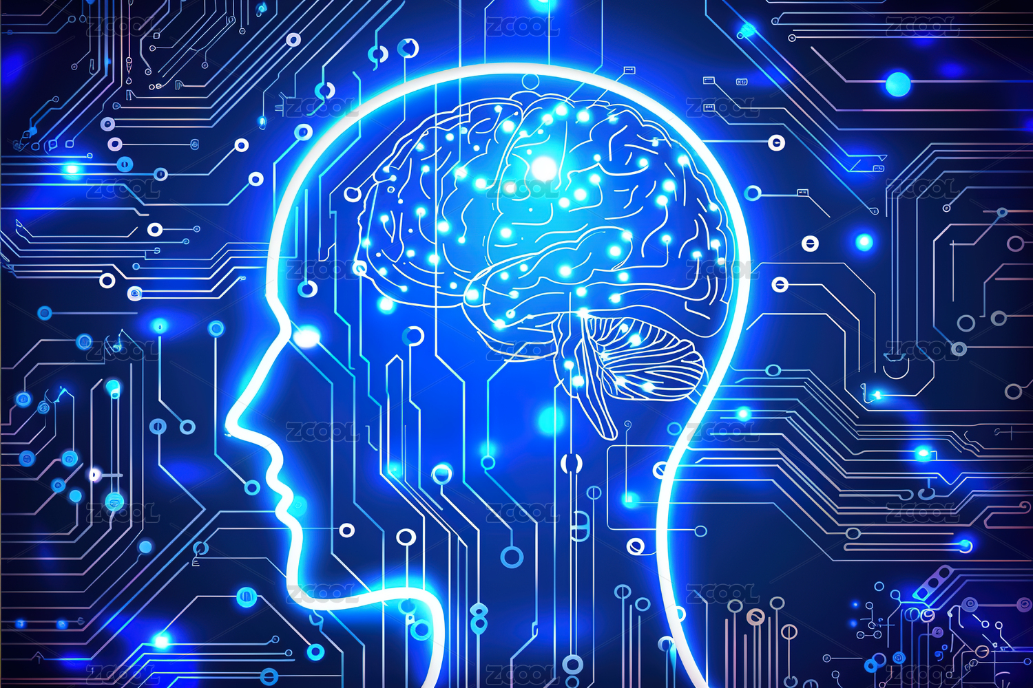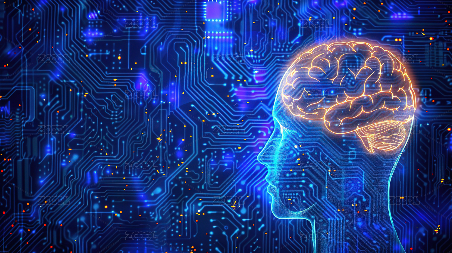 人脑,人工智能,电路板,光,抽象,未来,计算机,插画,设计,发光