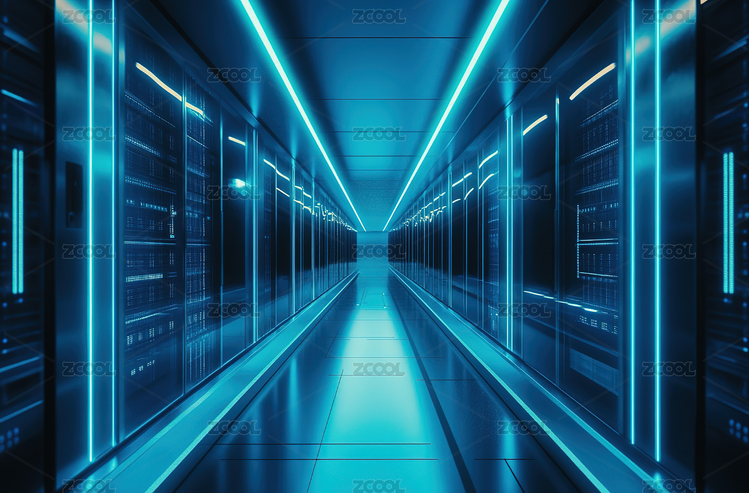 科技感数据中心服务器走廊