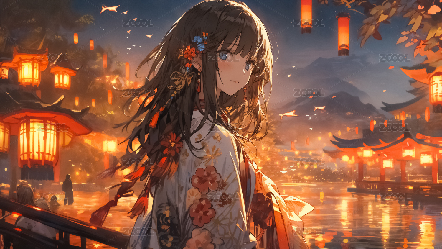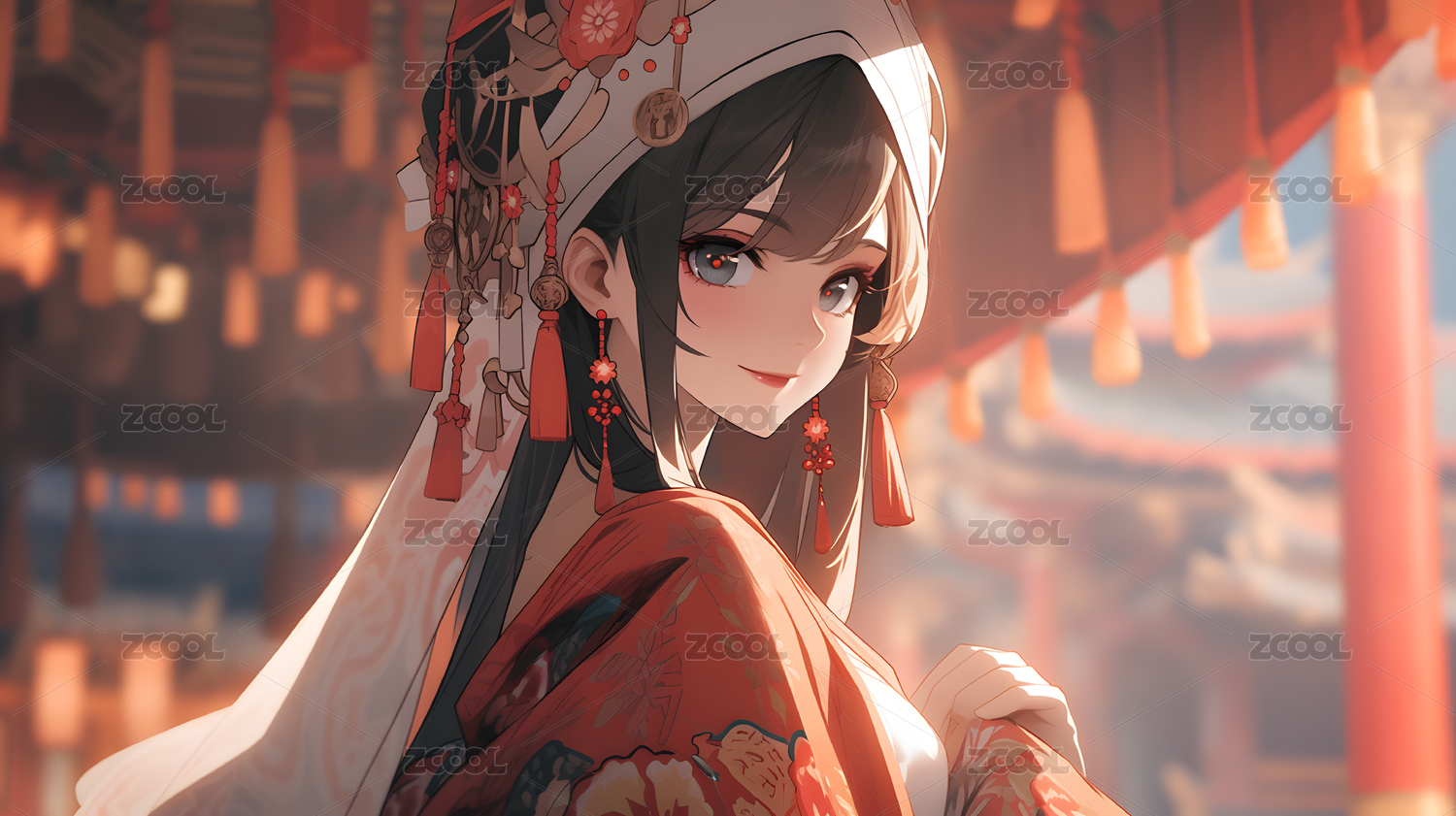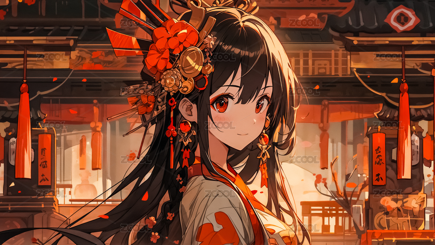 女性,人像,女孩,二次元,古风,人群,街道,屋檐,国风