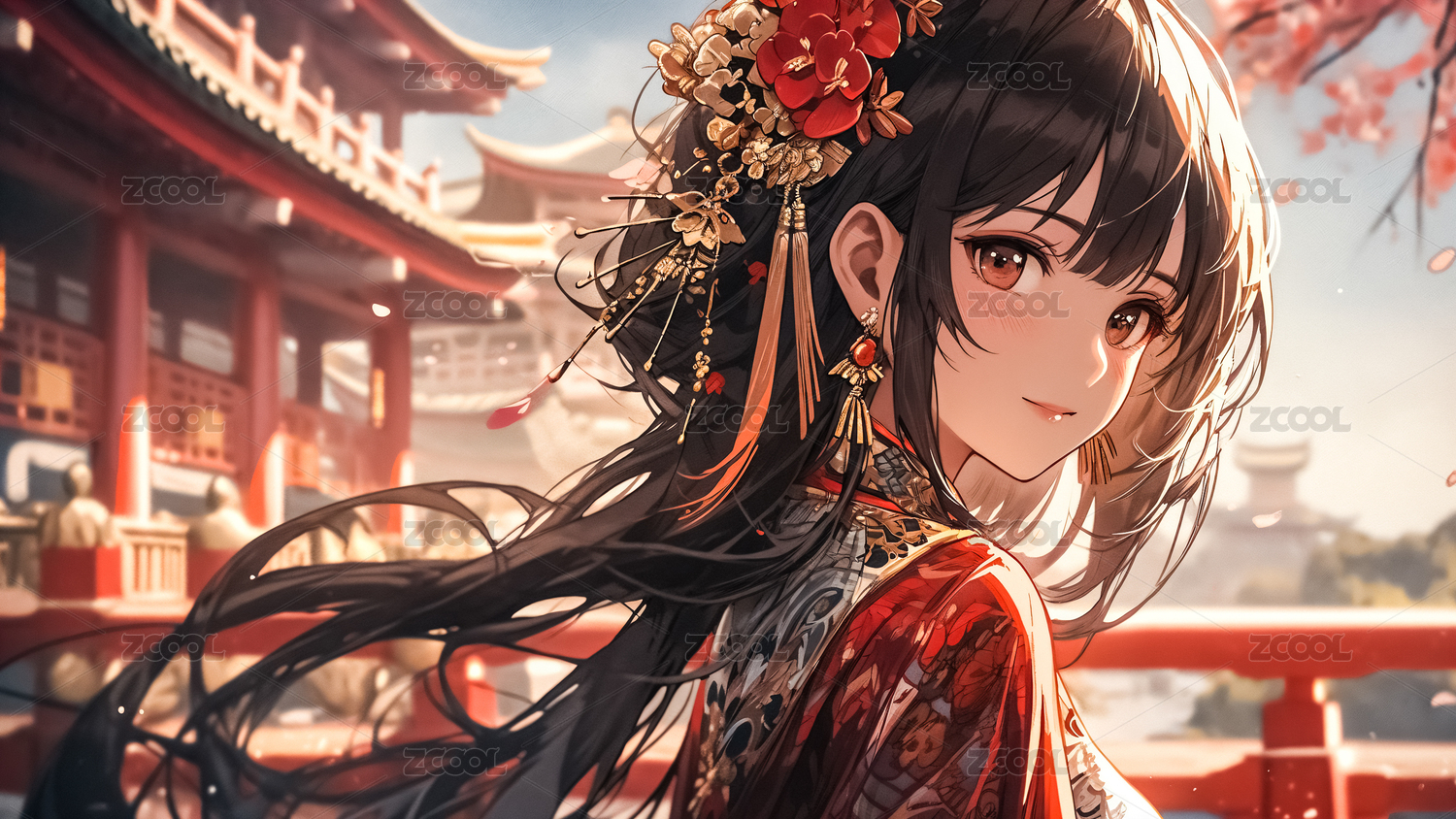 在中国园林里的古典动漫美女头像