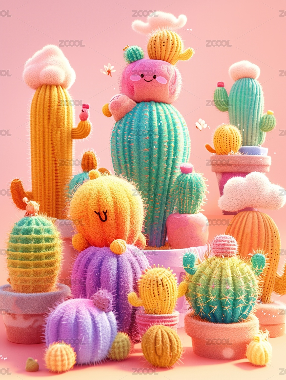 3D建模羊毛毡毛绒绒质感一盆仙人掌模型