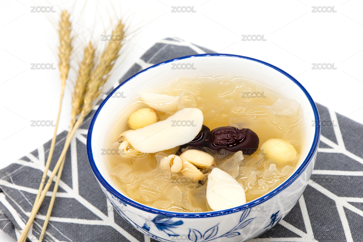 木桌背景广式糖水甜品银耳莲子百合糖水