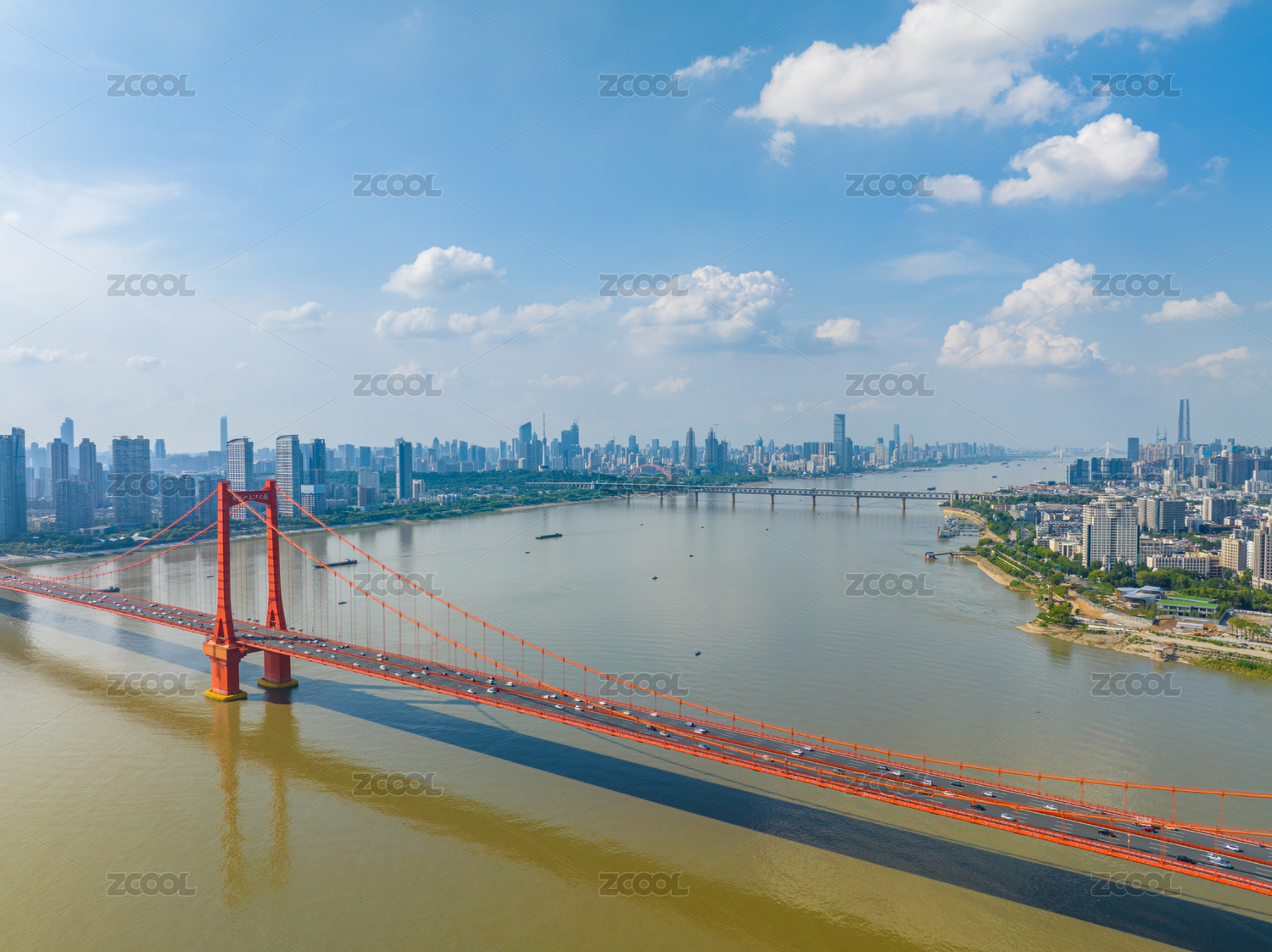 中国湖北武汉鹦鹉洲长江大桥城市航拍