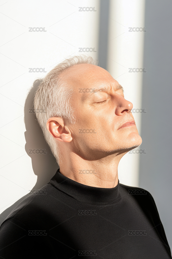 肖像,人像,外国人,DXCZ202406,阳光,阴影,宁静,闭眼,光影,休闲