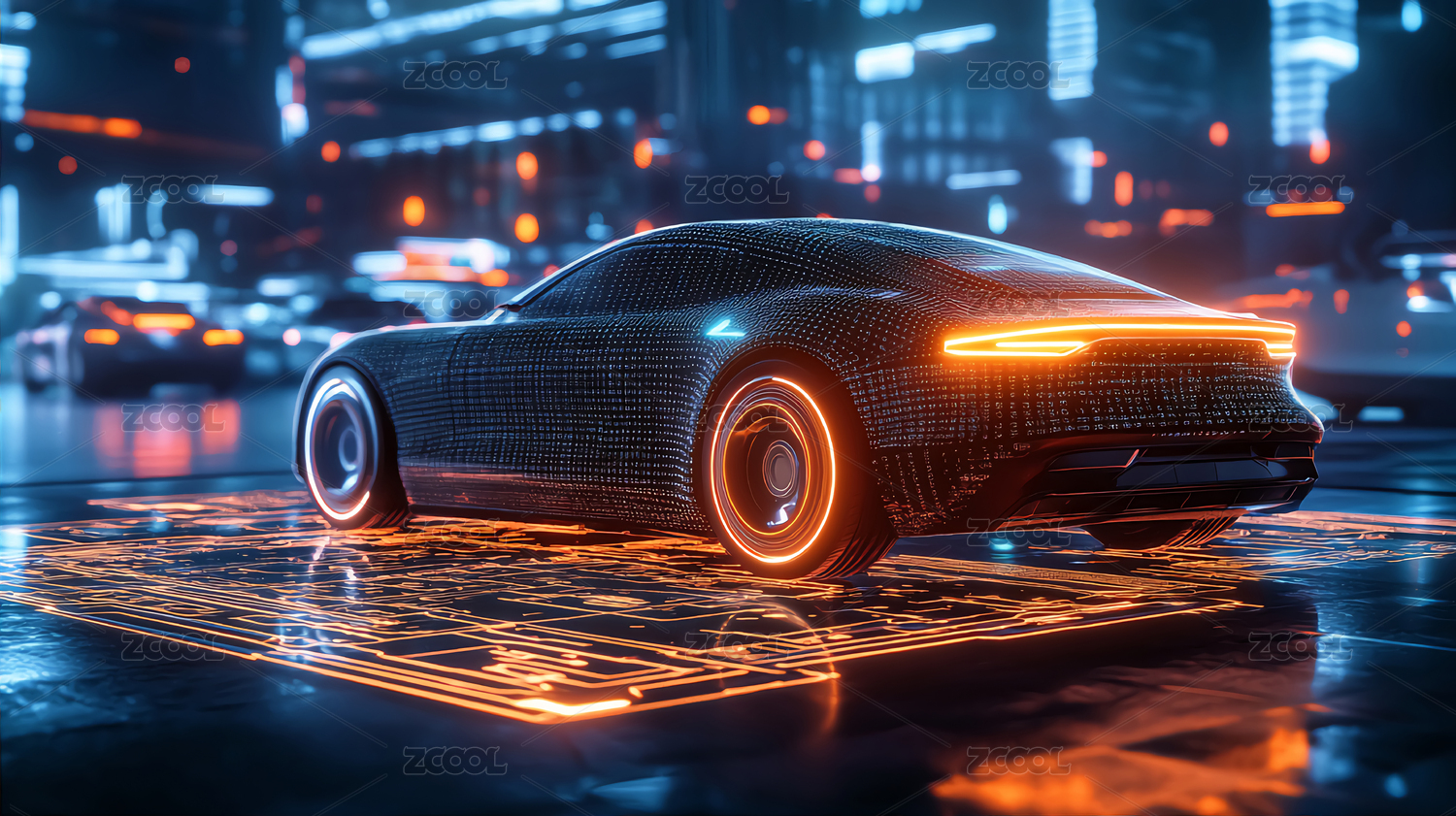 未来都市中的科技跑车