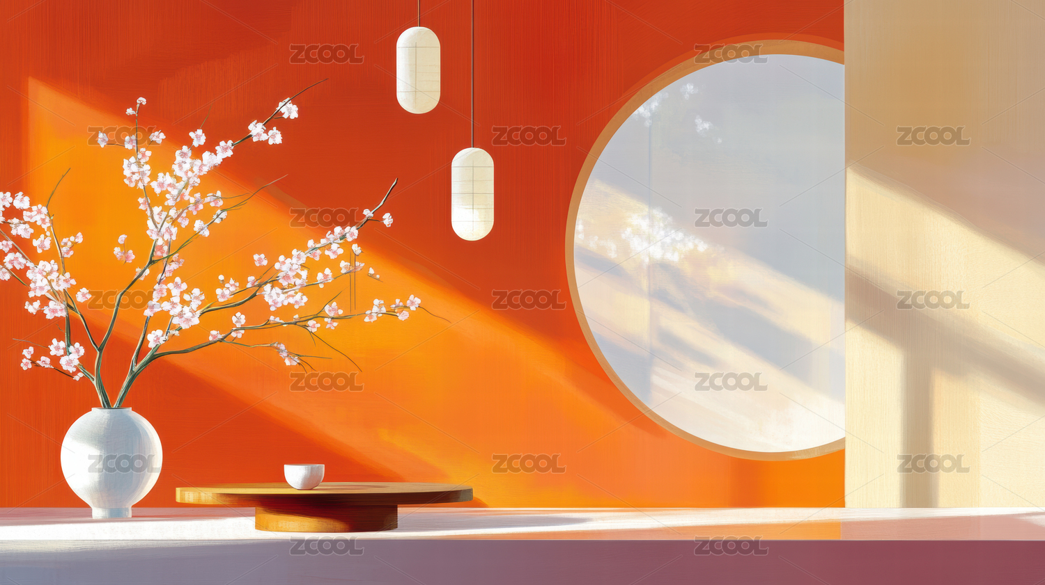 灯笼,简约,现代,装饰,家居,阳光,阴影,树枝,温暖,橙色