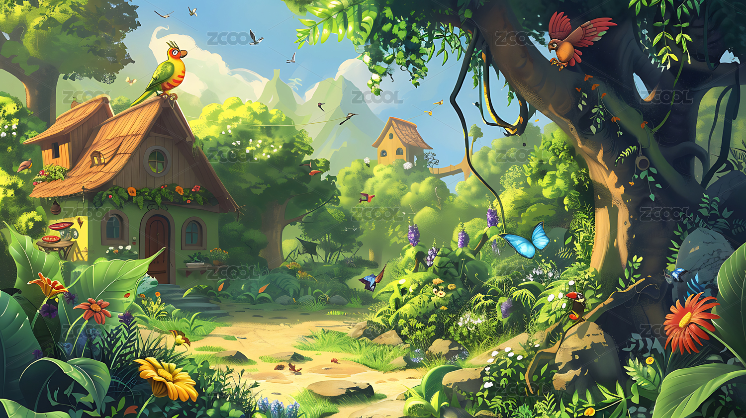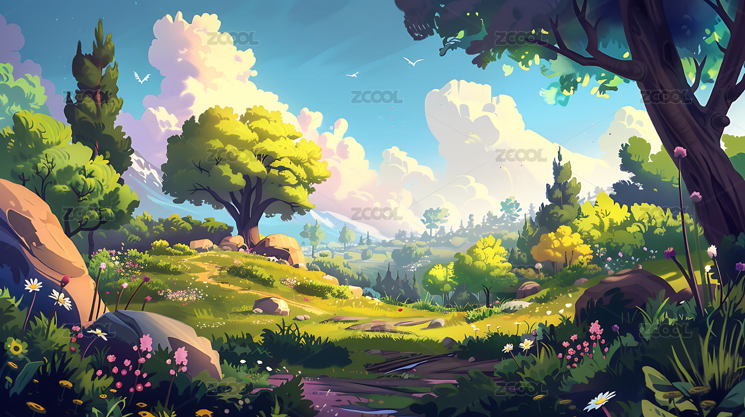 插画,卡通,动画,背景,风景,自然,植物,场景,绘本,漫画