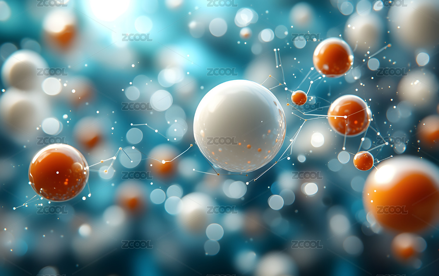 分子结构透明球形物体场景
