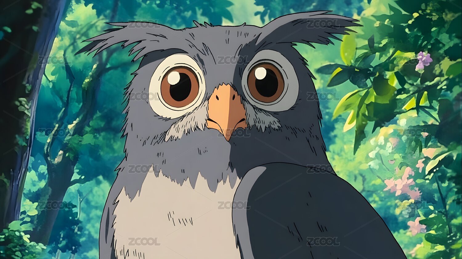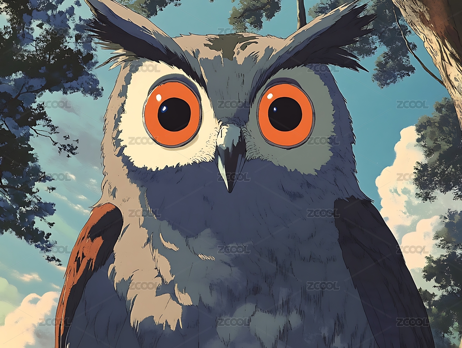 日漫动物猫头鹰吉卜力宫崎骏风格插画