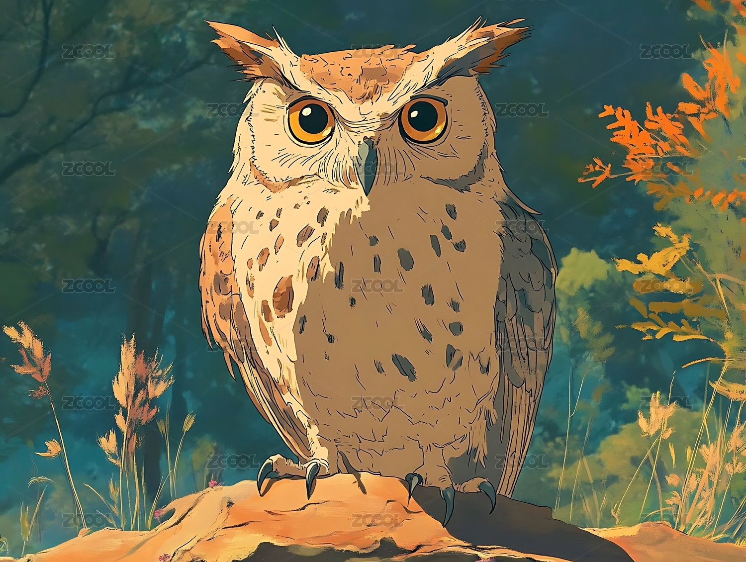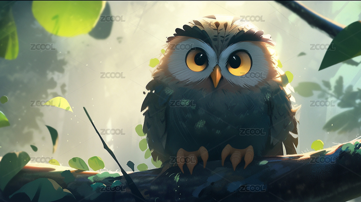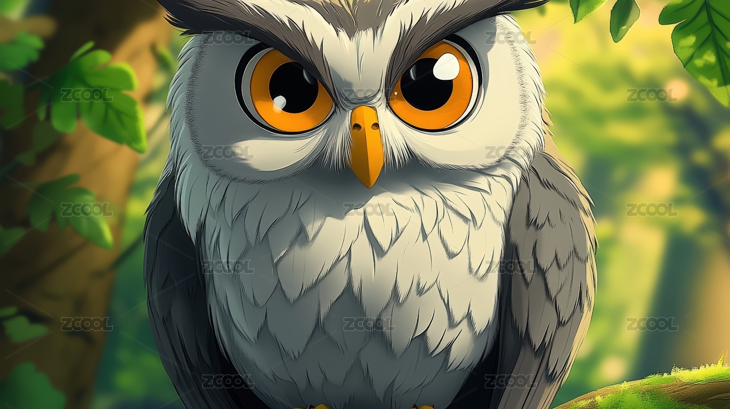 猫头鹰日漫风插画