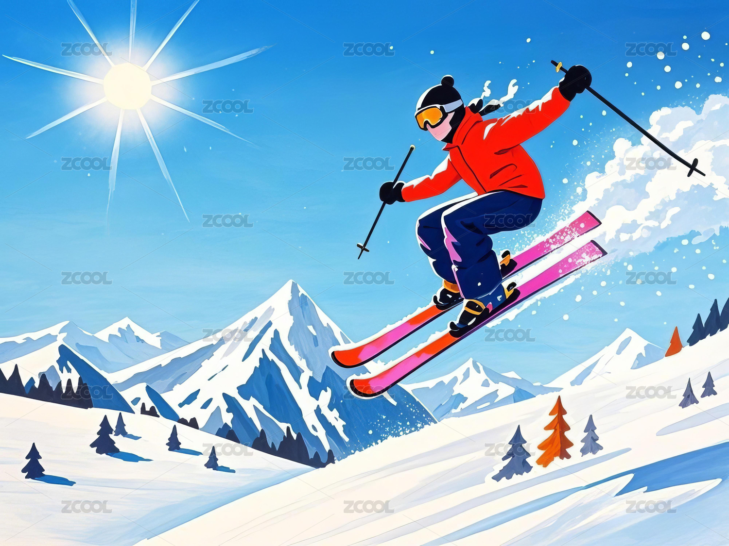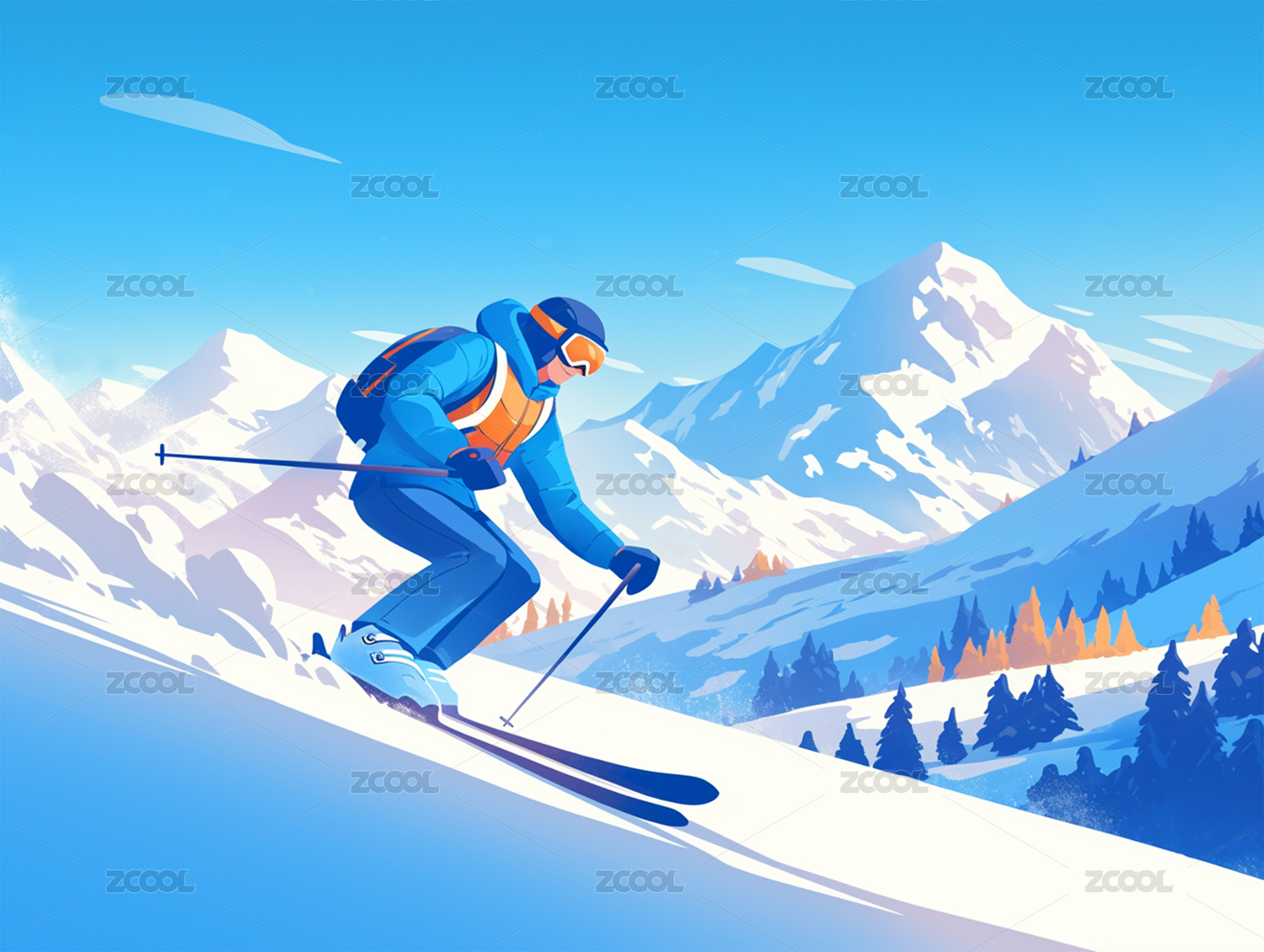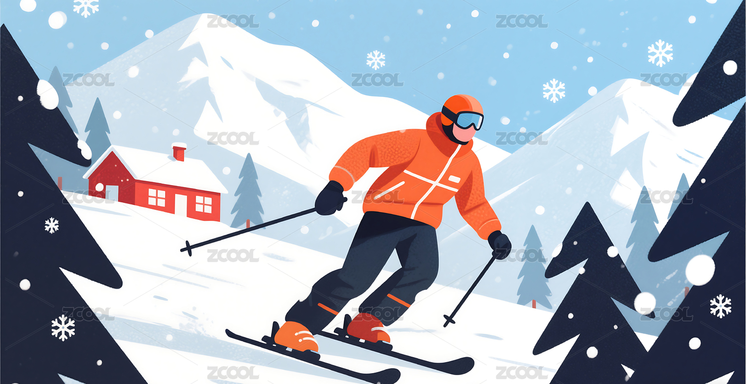 立冬节气冬天滑雪运动假期娱乐冒险活动插画