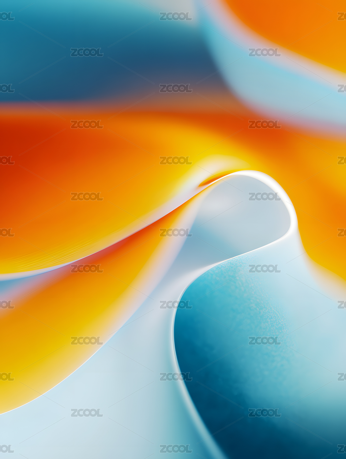 蓝色与橙色交织的抽象波浪