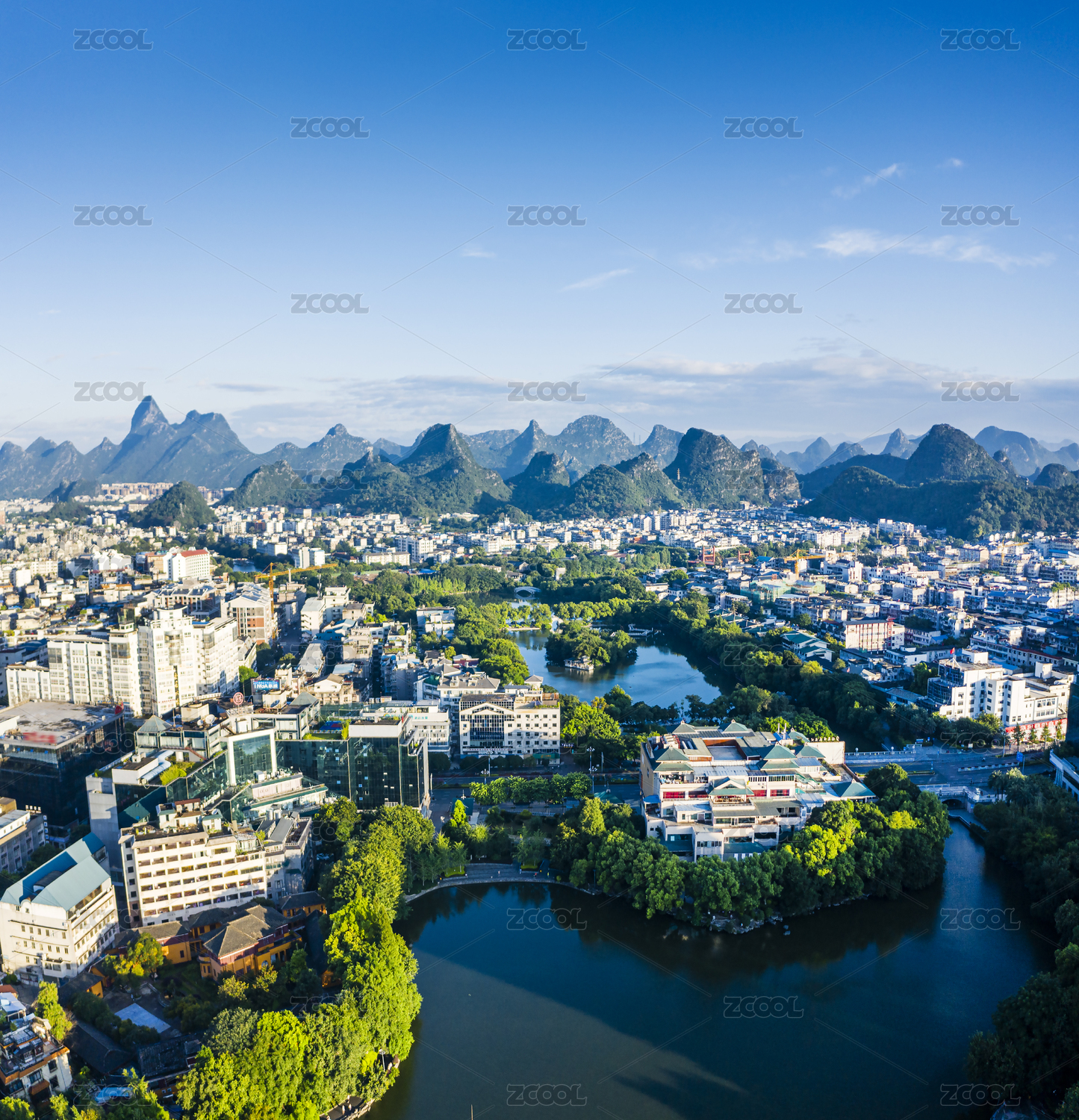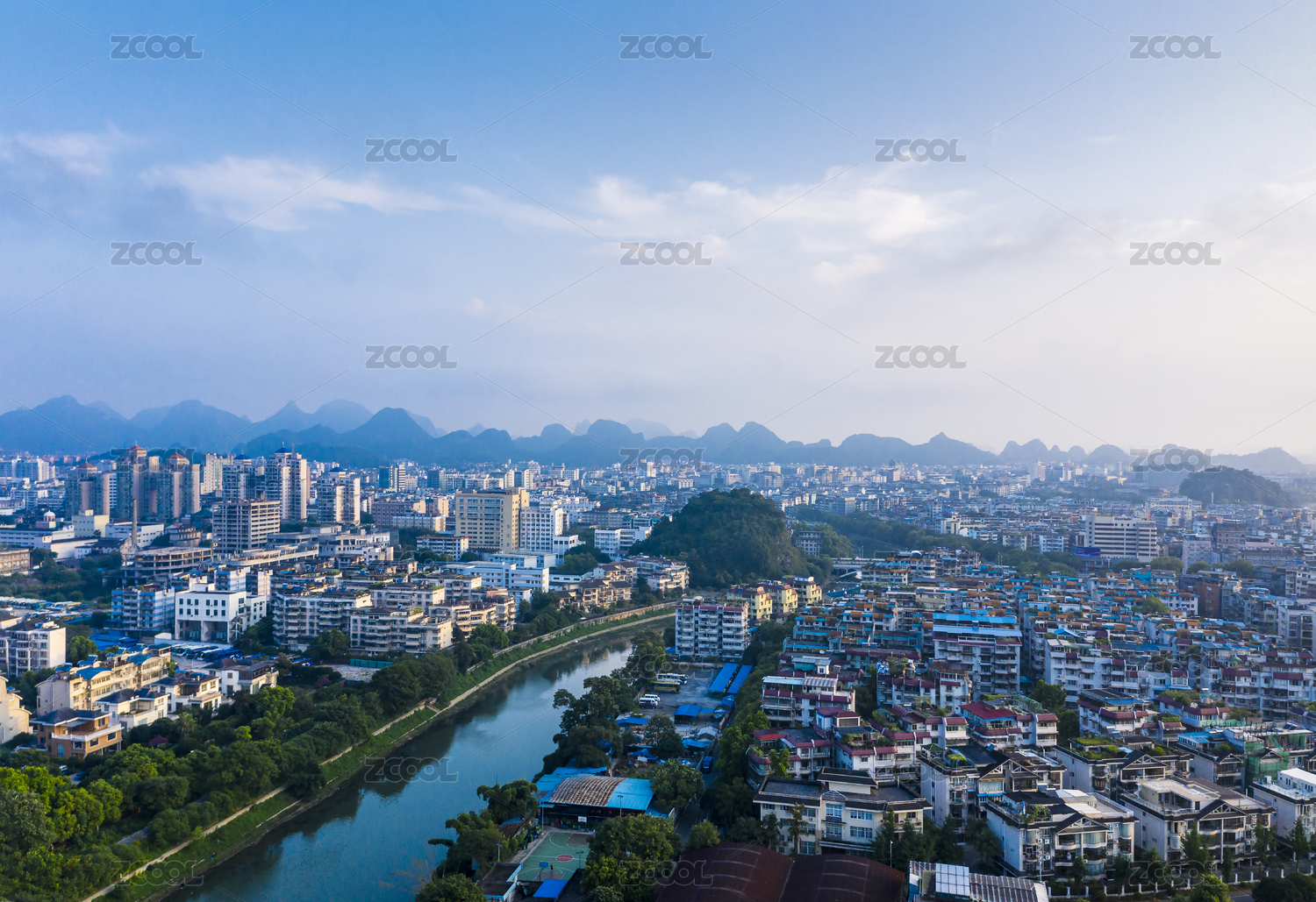 桂林漓江沿岸城市风景及自然风光日落晚霞