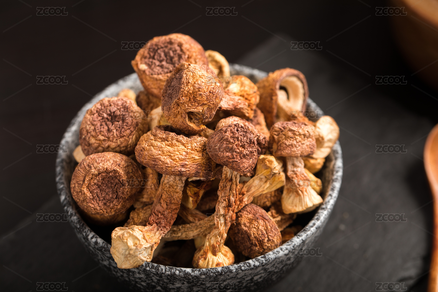 放在盘子里的云南香格里拉野生菌姬松茸干货