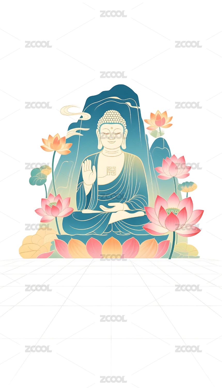 中式传统国潮风格佛像插画素材