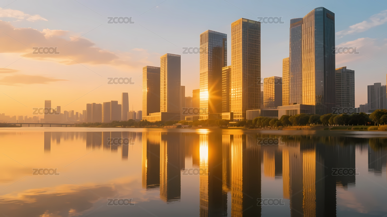 浙江杭州钱塘区东沙湖畔城市住宅风景