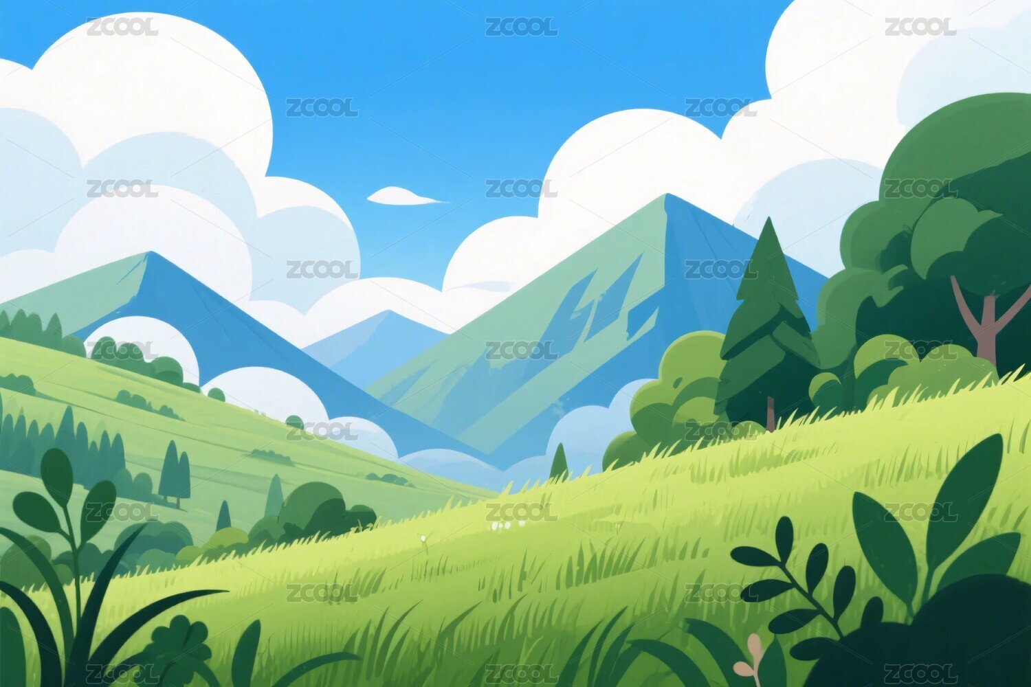 卡通绿色草地景观