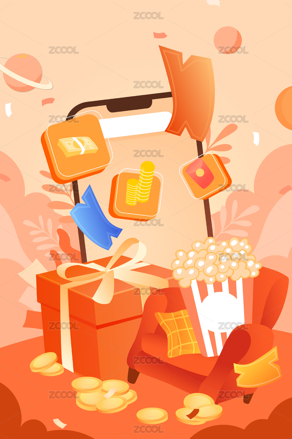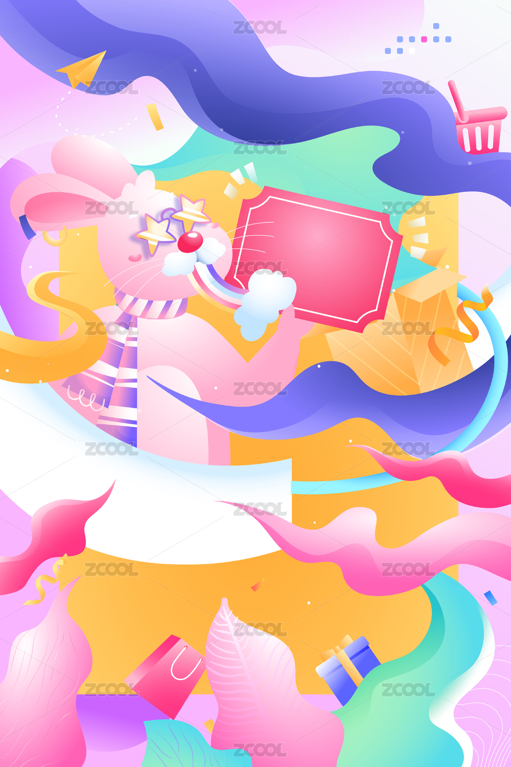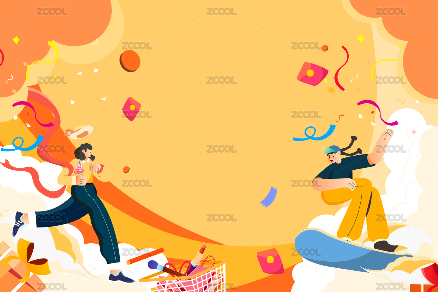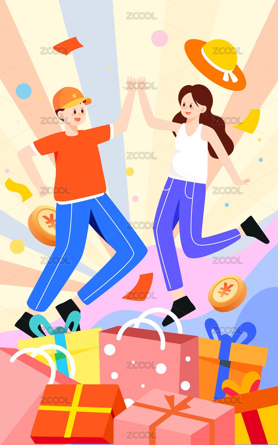 卡通,渐变,扁平,矢量,插画,插图,背景,元素,购物节,购物