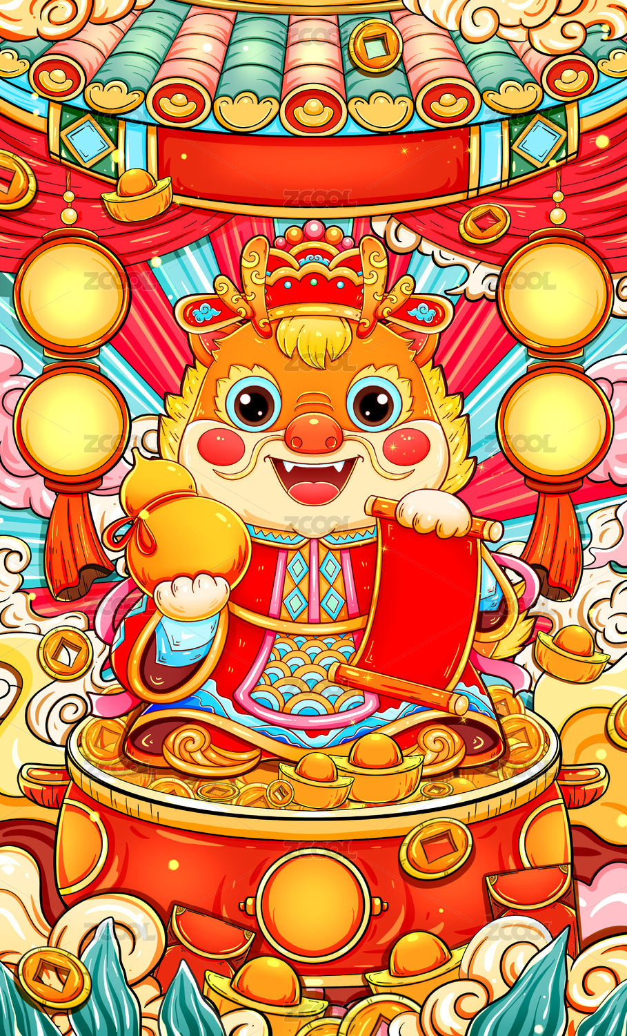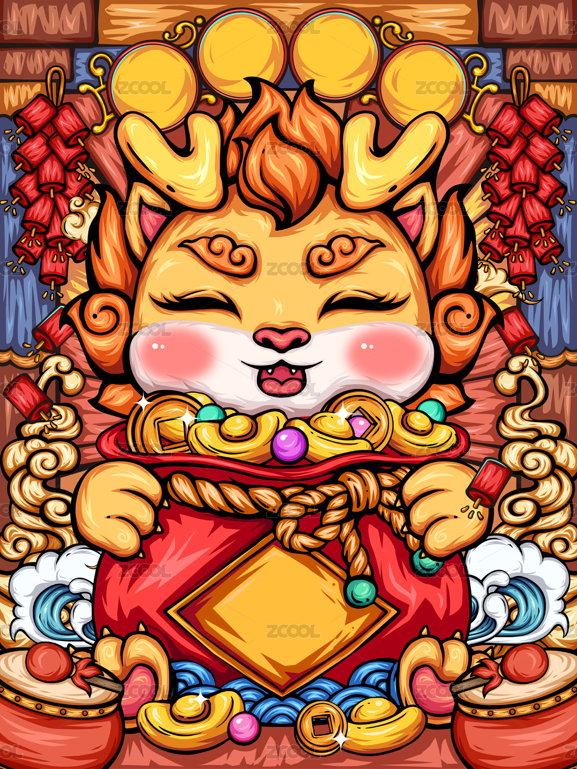 龙年,插画,新年,春节,年俗,传统节日,中国文化,可爱,喜庆,快乐