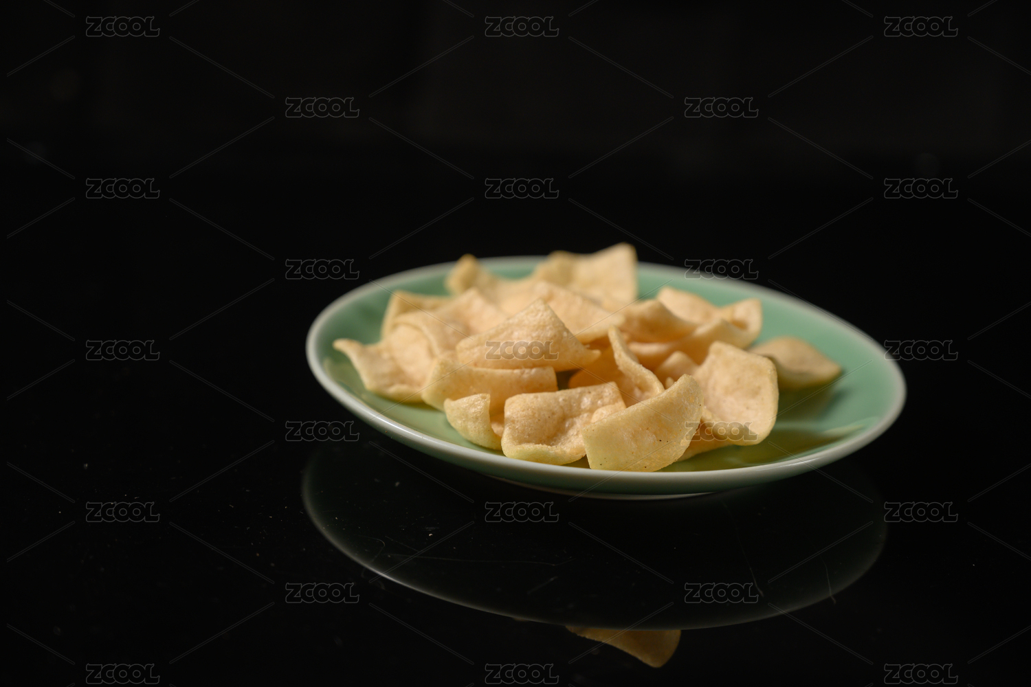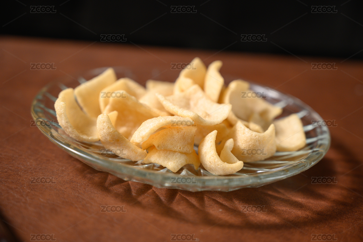 桌面上的盘子里的美味可口的虾片