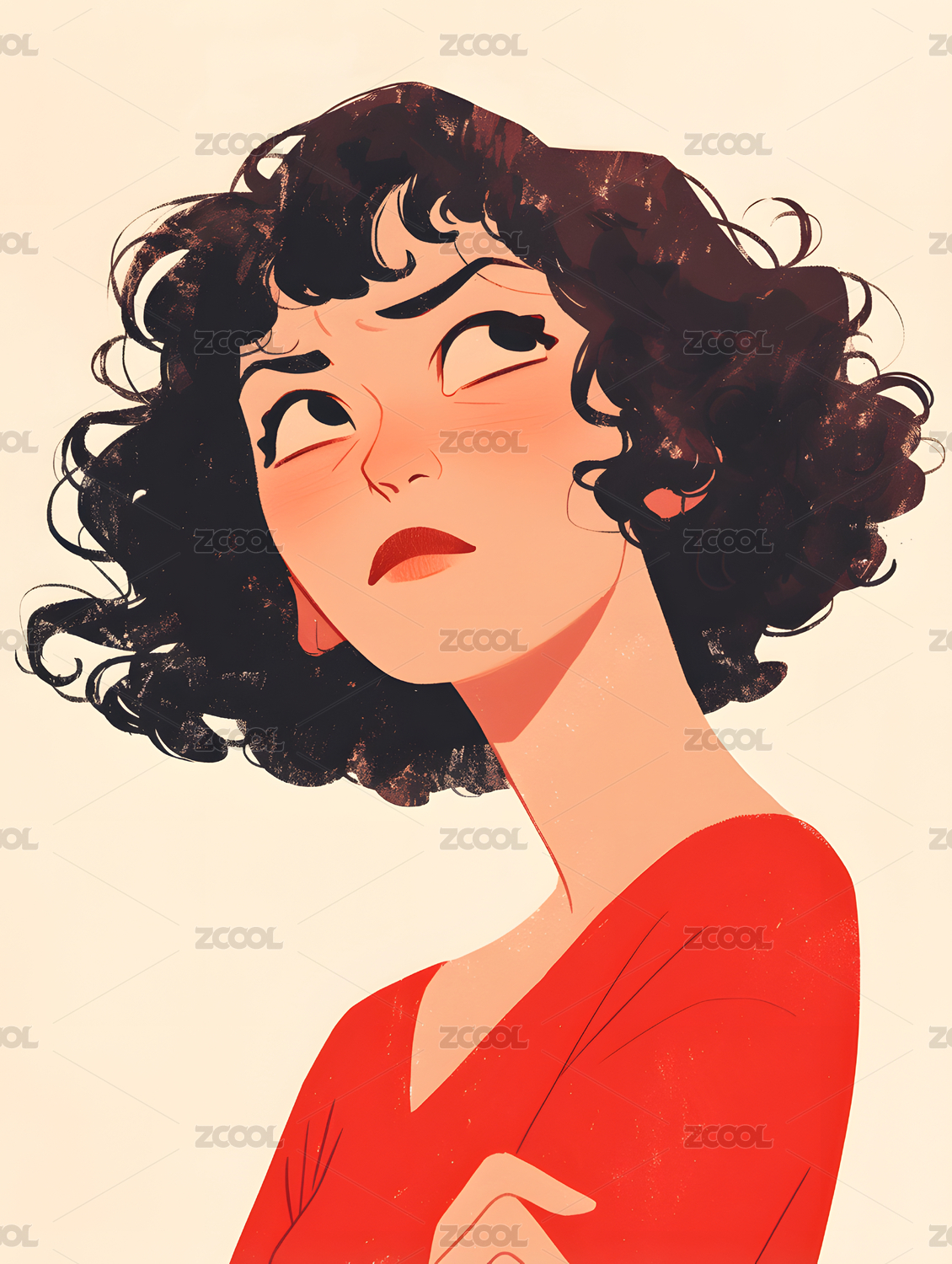 夏天黑头发黄皮肤东方女性头像扁平插画绘画