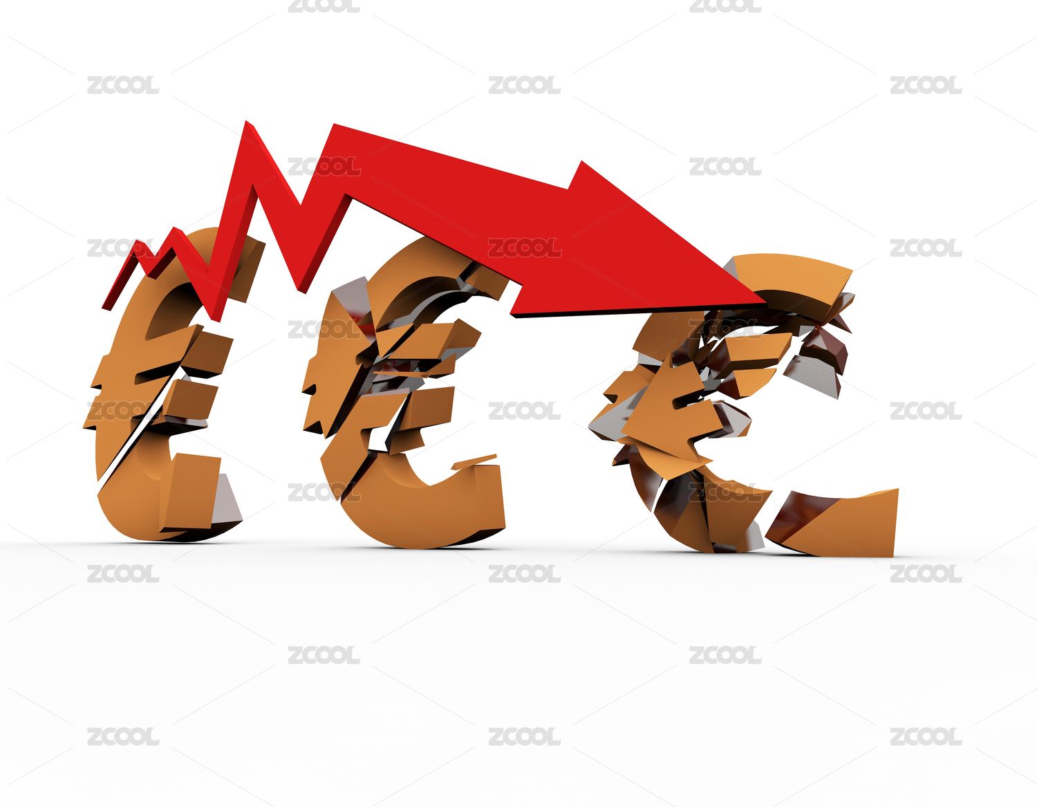 金融经济衰退,货币贬值,下降的箭头,欧元符号