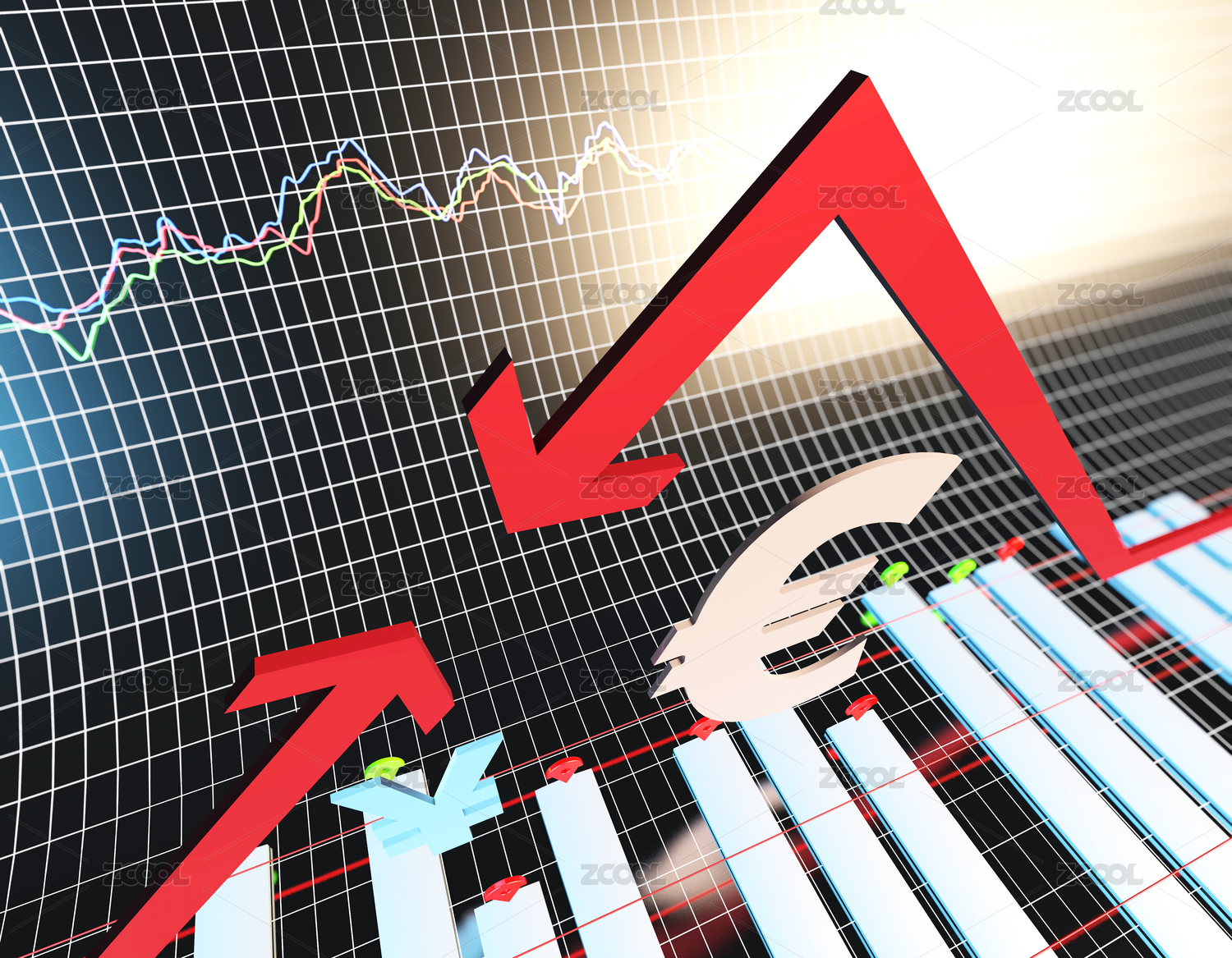 金融经济成功箭头柱状立方体阵列与欧元货币符号,代表了经济的发展与事业的成功