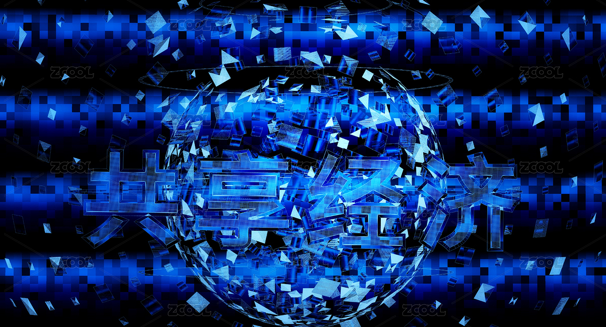 比特币蓝色全息三维空间科幻场景