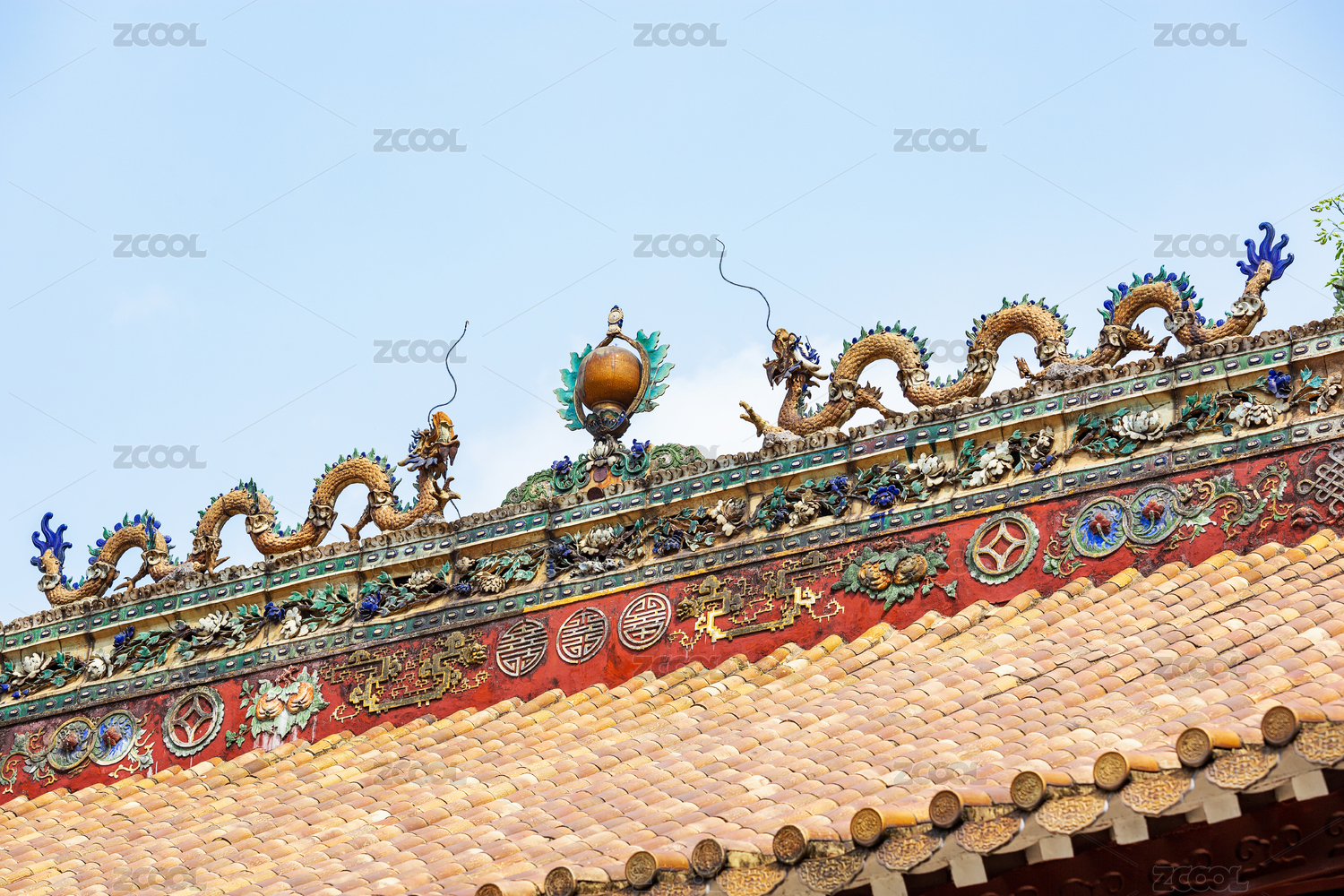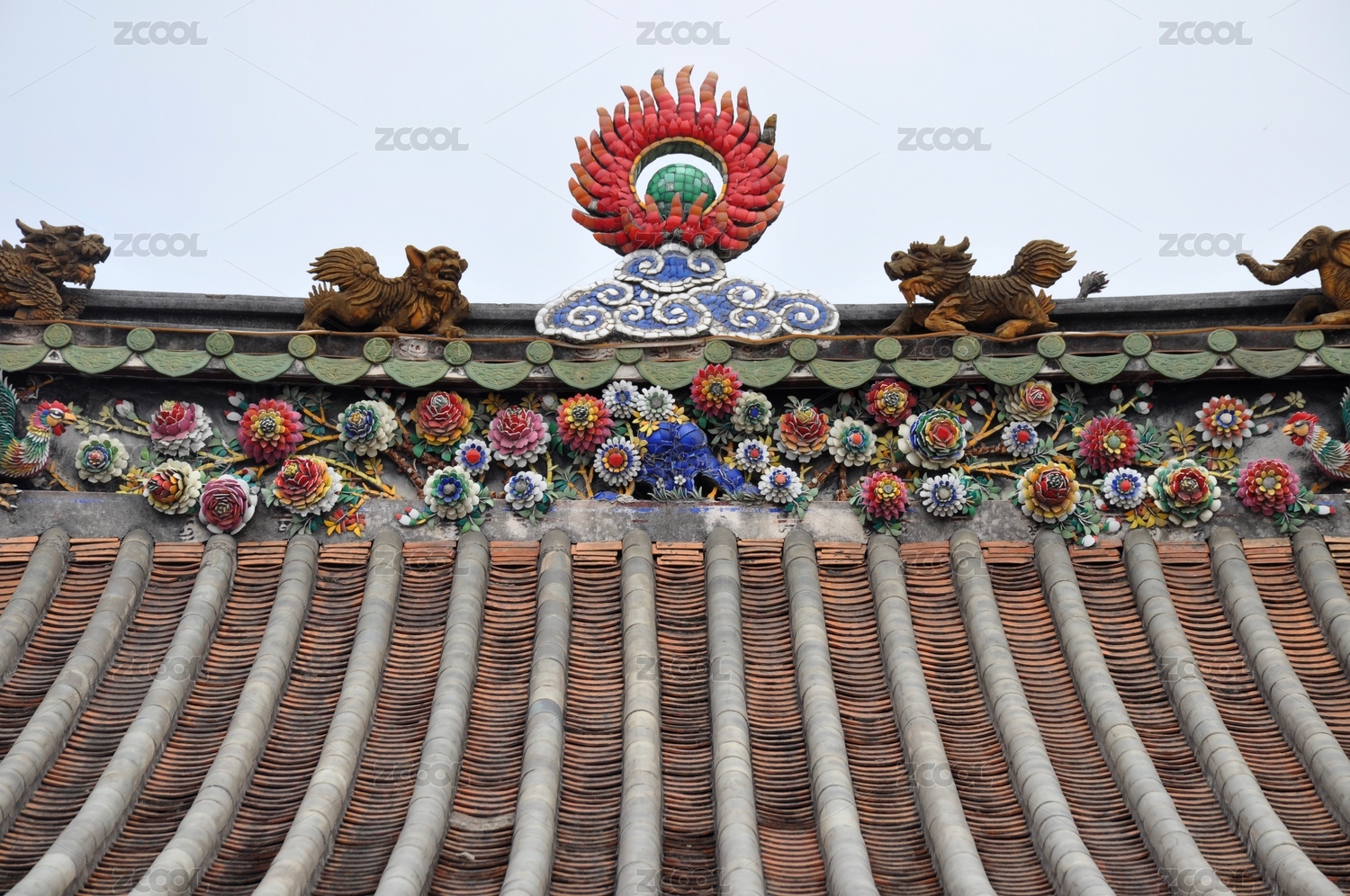 广东民间工艺博物馆的传统建筑屋顶精美装饰