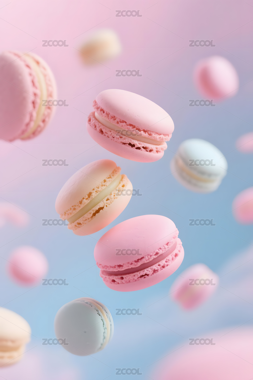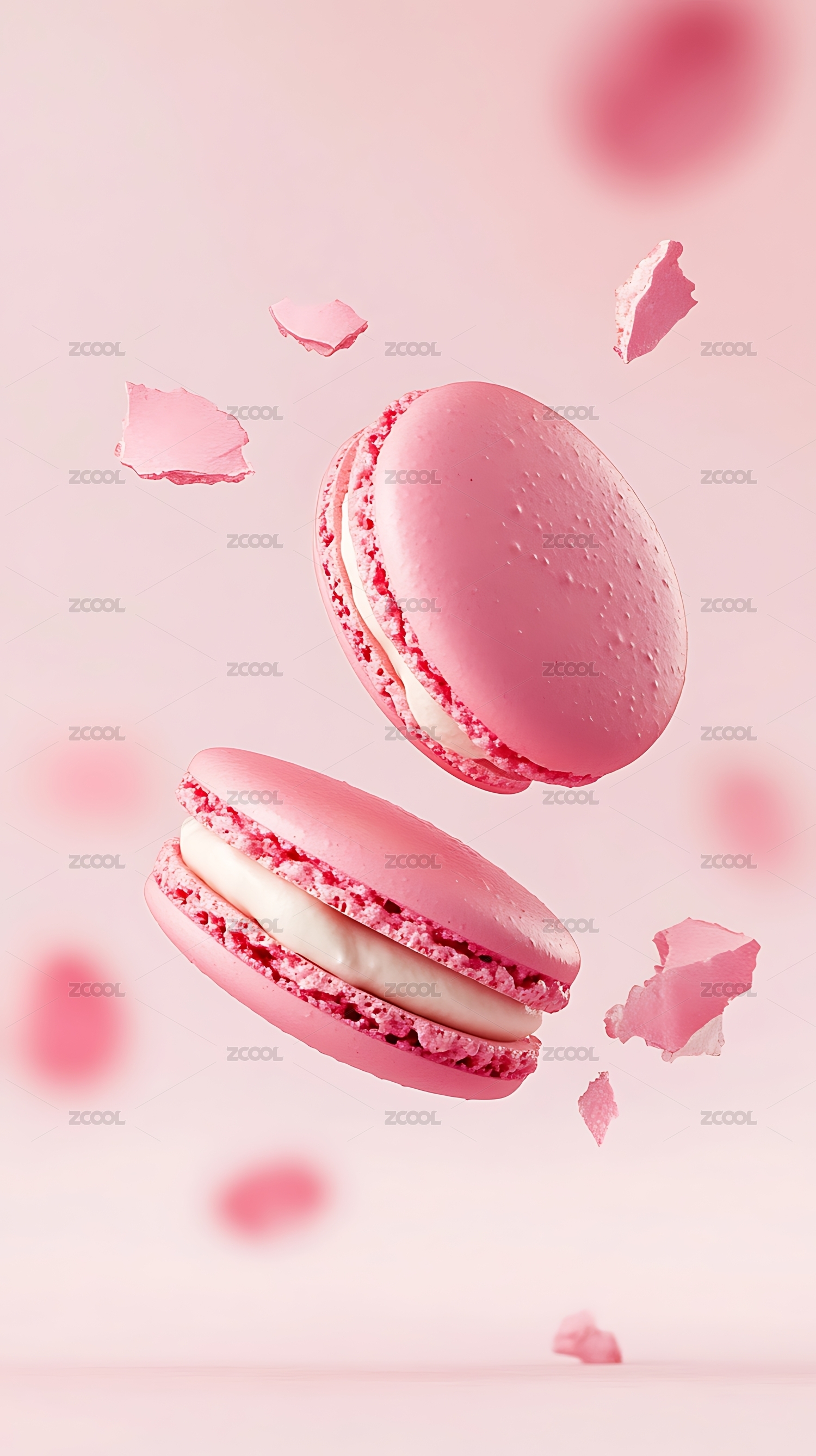 粉色背景下飞舞的马卡龙