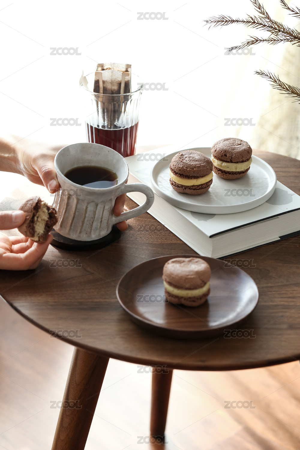 咖啡和马卡龙下午茶