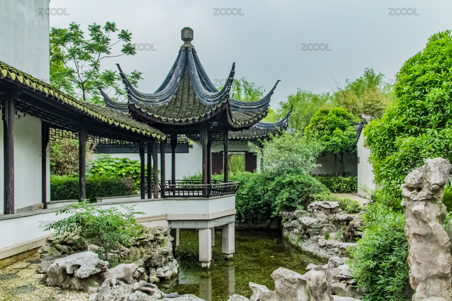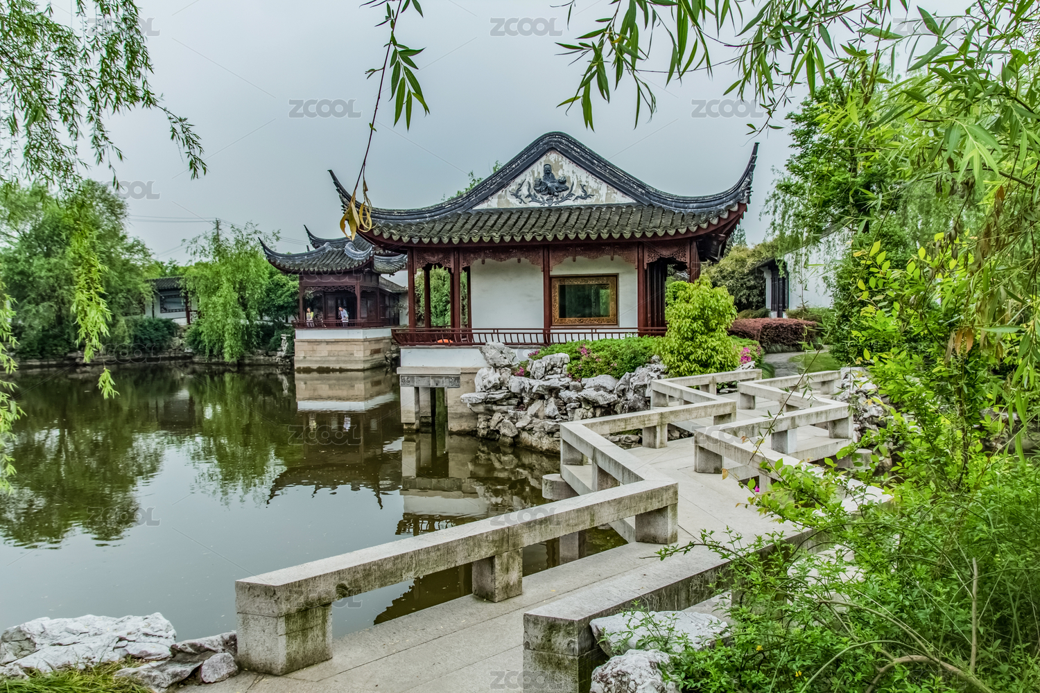 一榭园,石桥,亭,亭子,花园,池塘,树,中国,江苏,苏州
