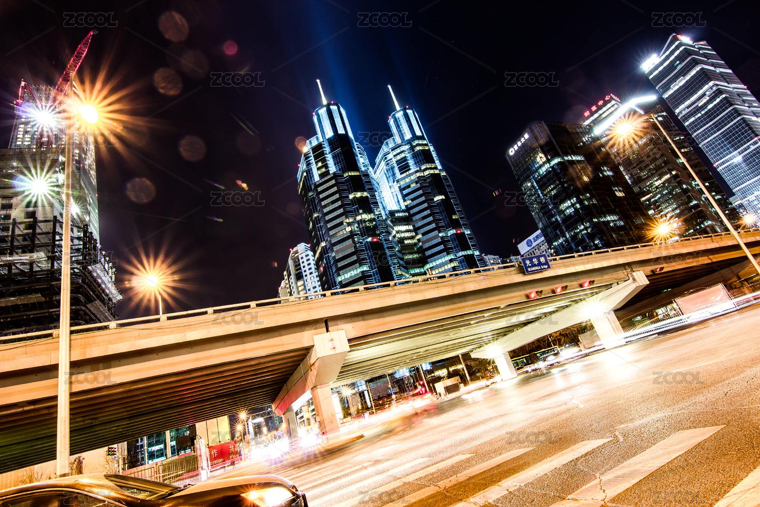 北京,夜景,车流,国贸,CBD,路,大都市区,市区,灯光,晚