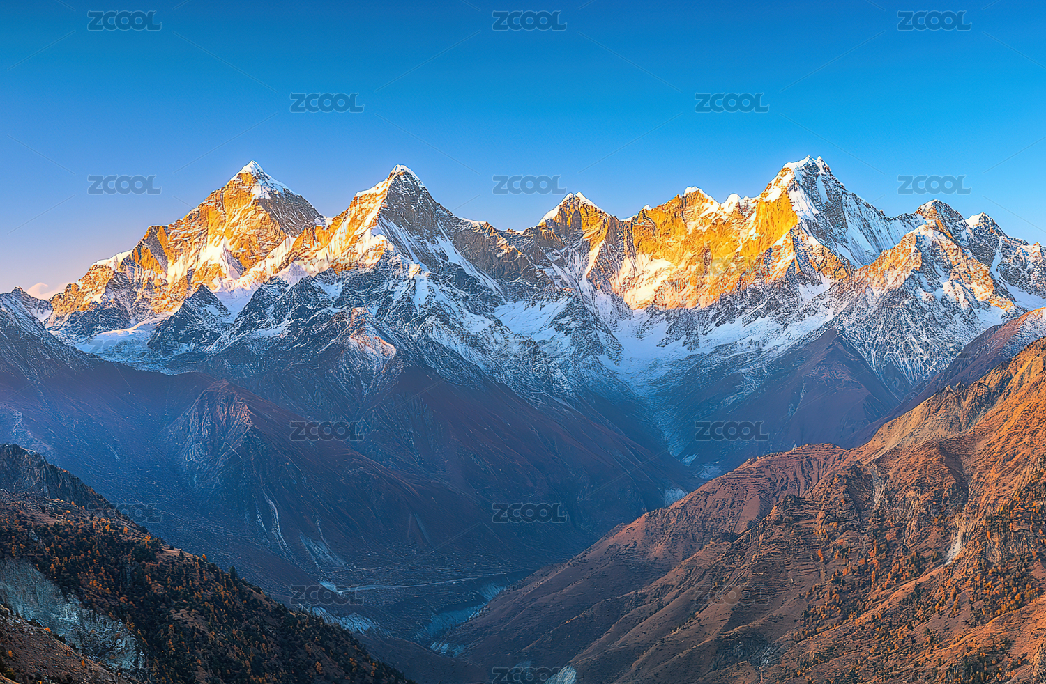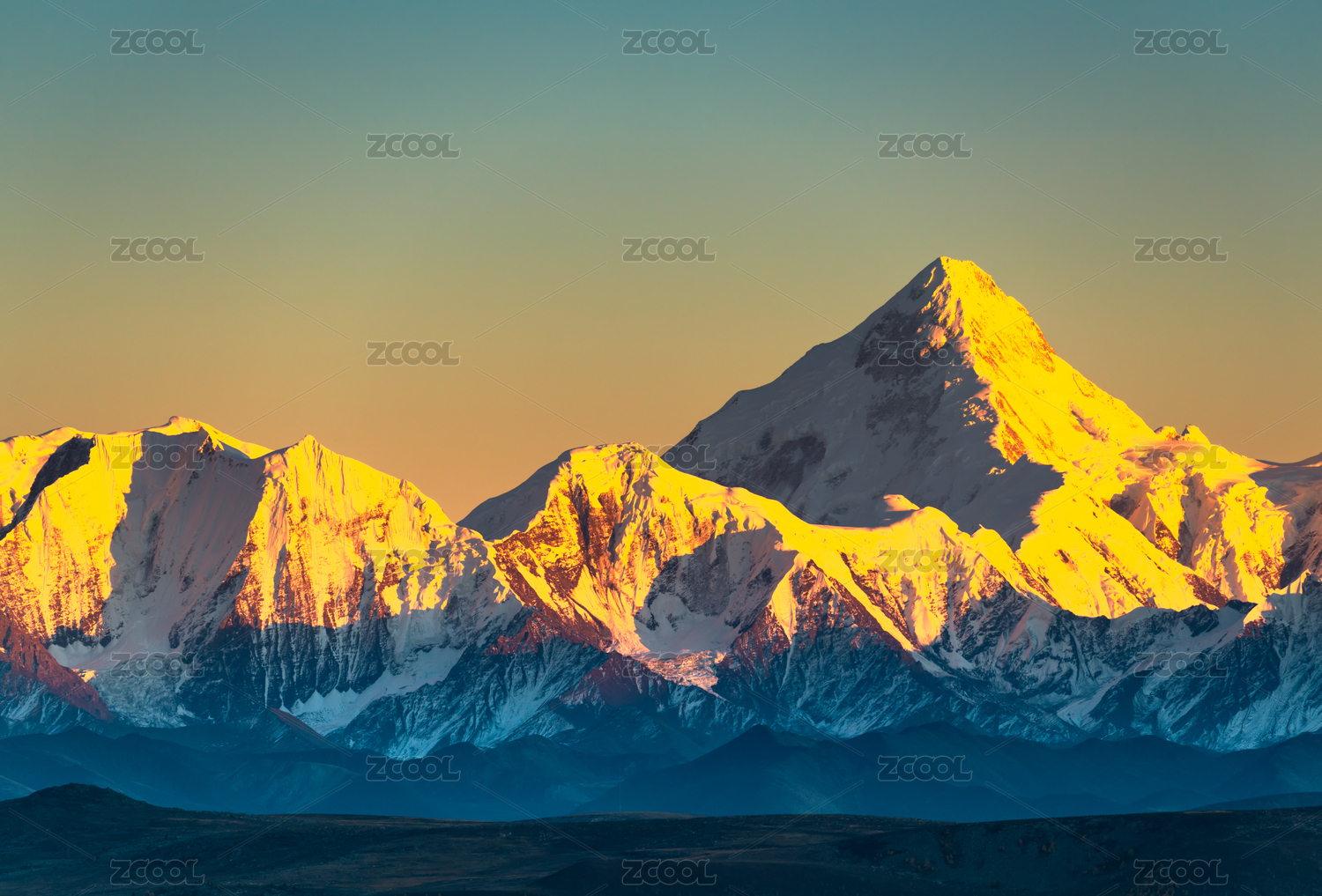 中国四川甘孜藏族自治州贡嘎山日照金山风光