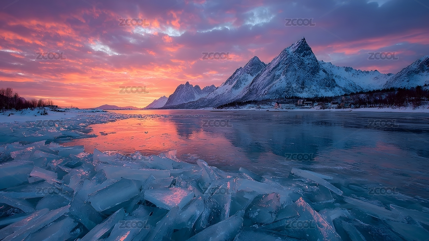 冬季冬天户外风景,鸟瞰雪山,森林和湖泊