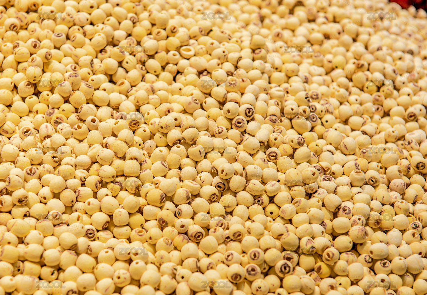 超市中一堆待售的黄色莲子