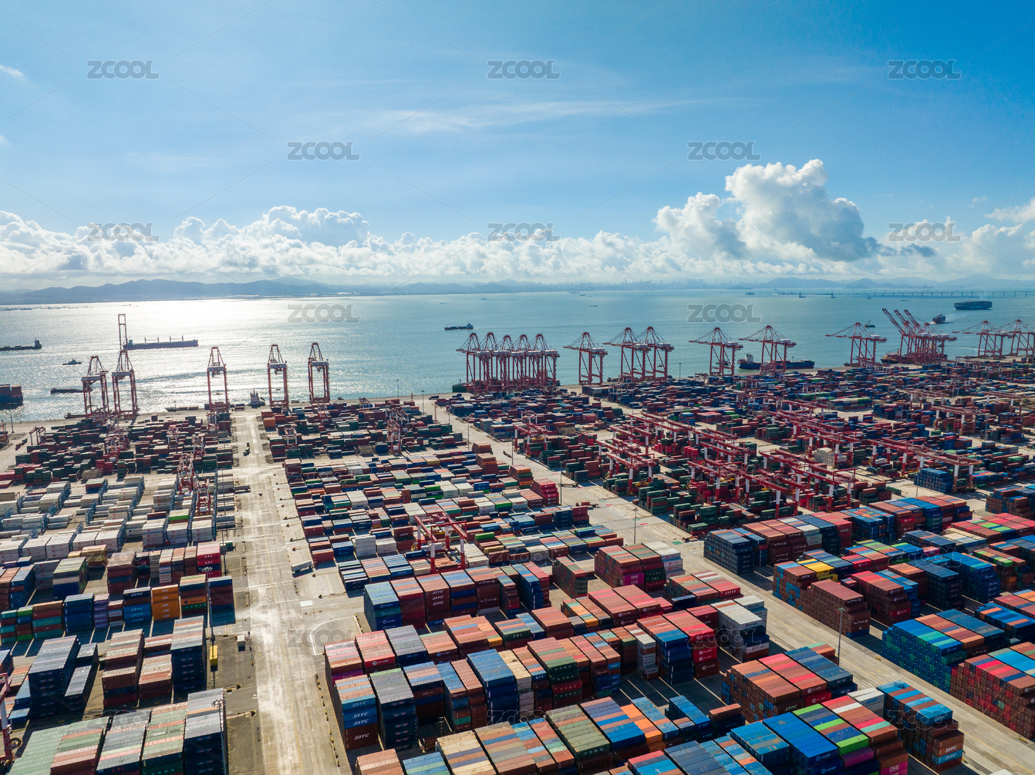 航拍视角,海港,贸易,背景,商用码头,海上运输,货物集装箱,货运,码头,轮船