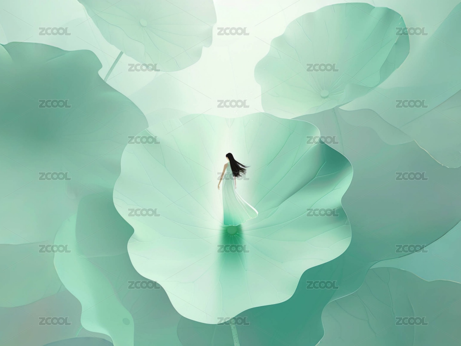 荷叶下的女孩