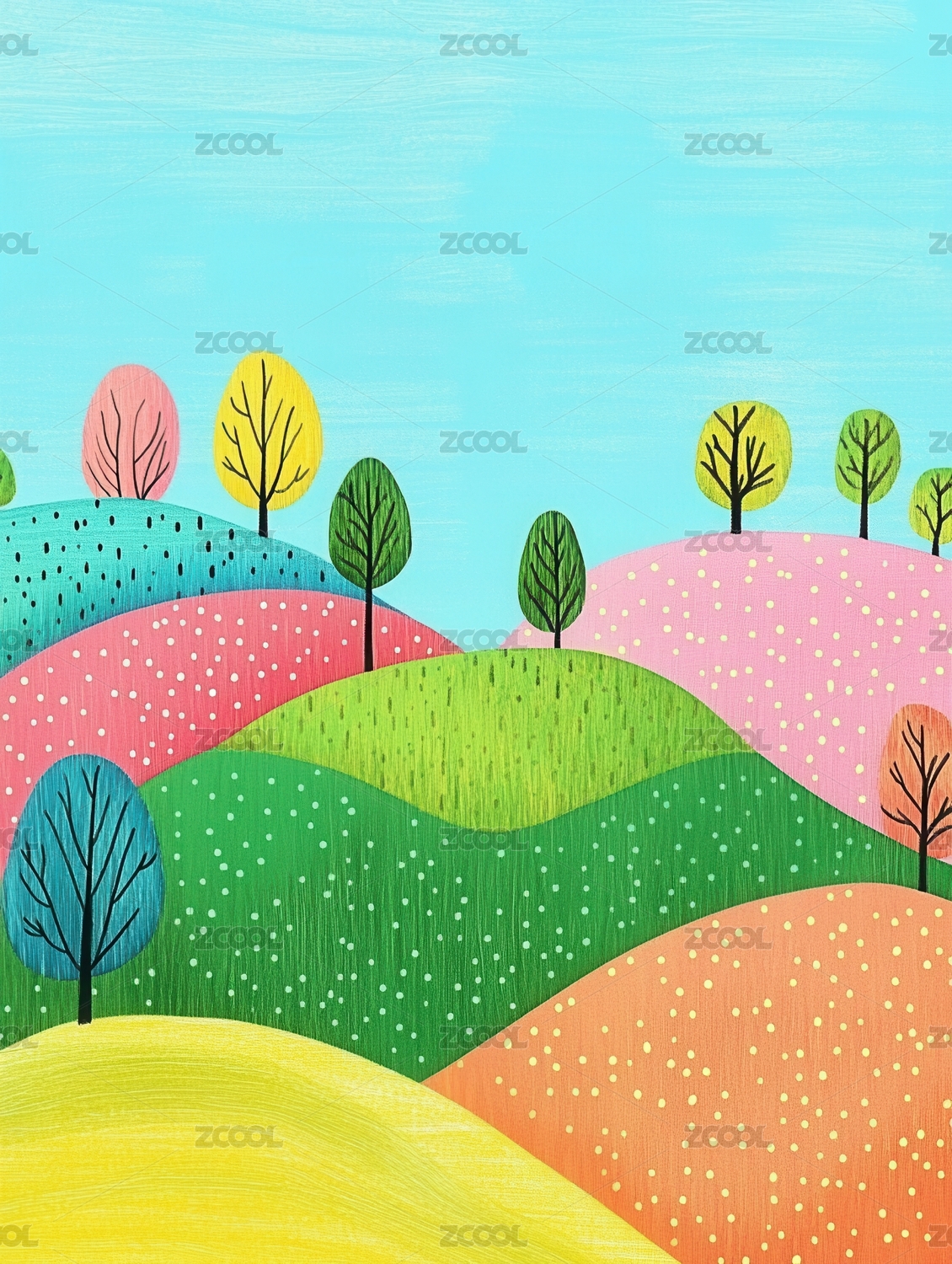 彩色丘陵田园风光图