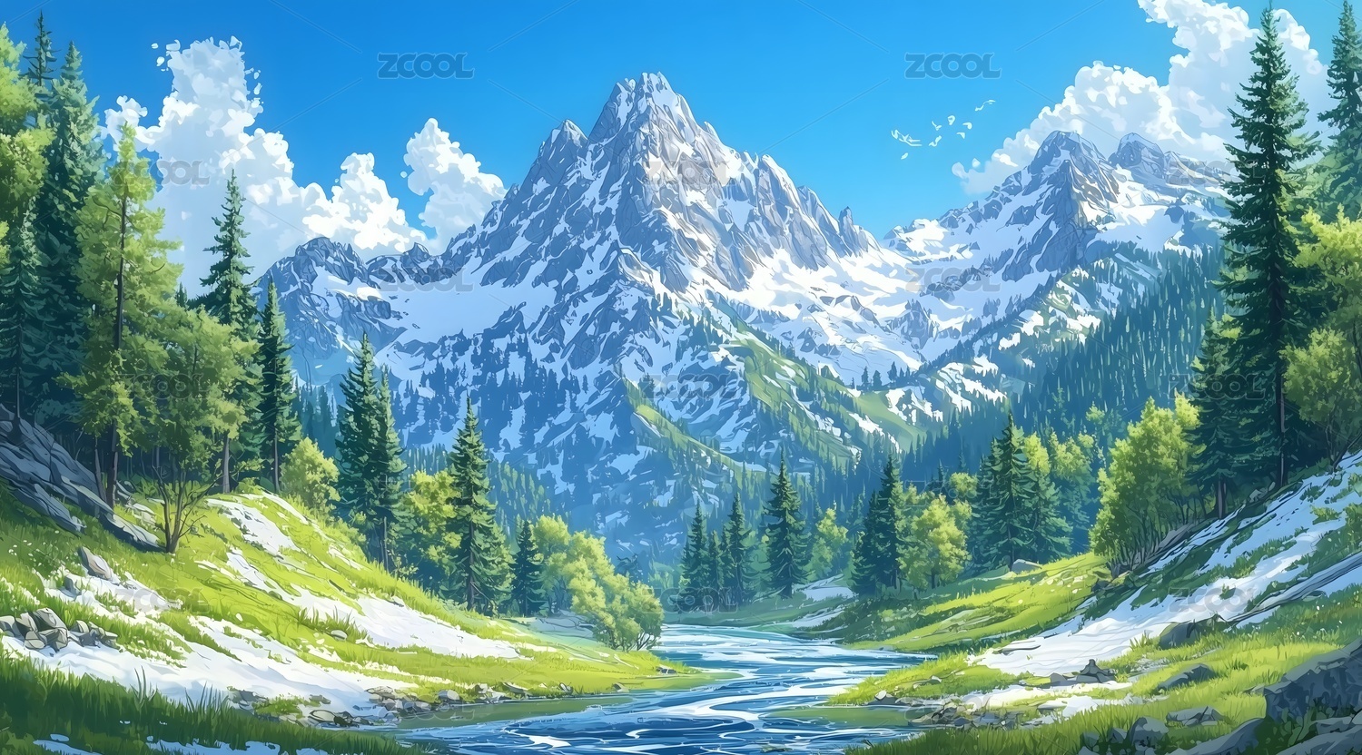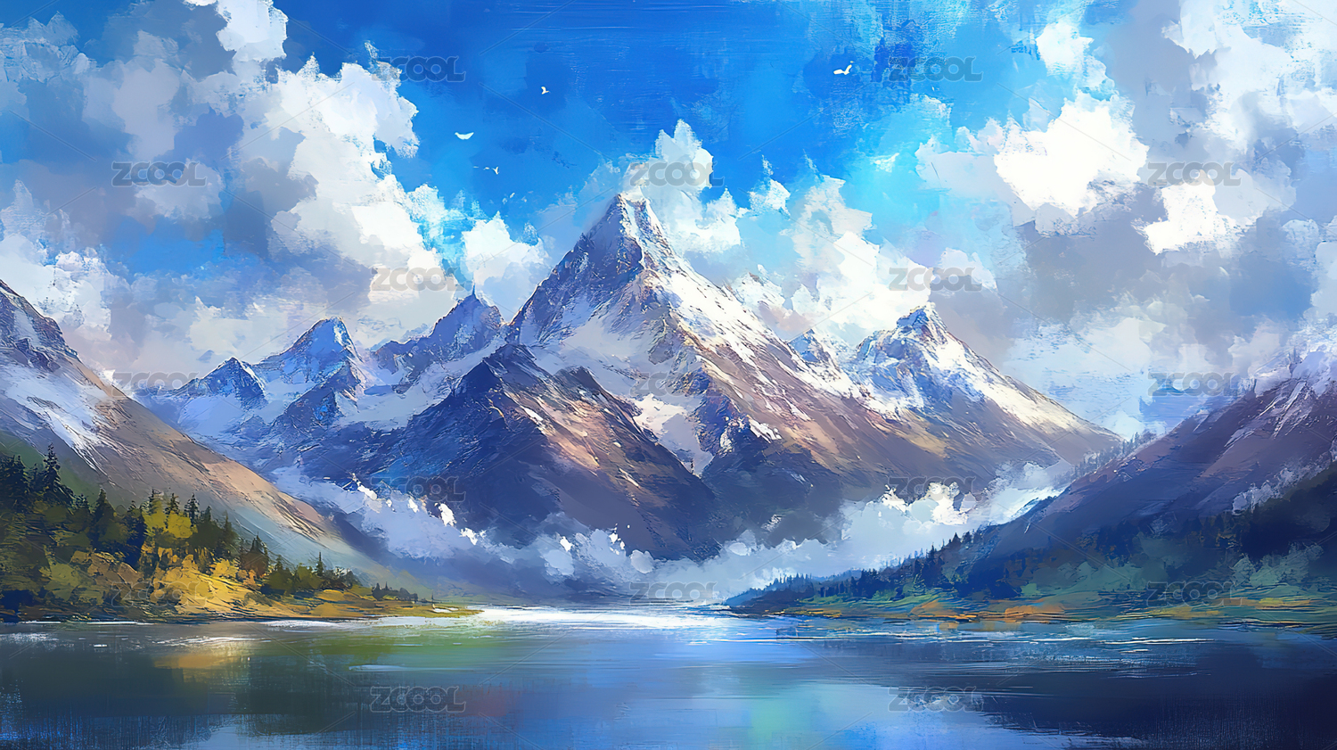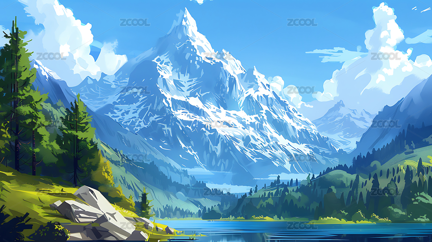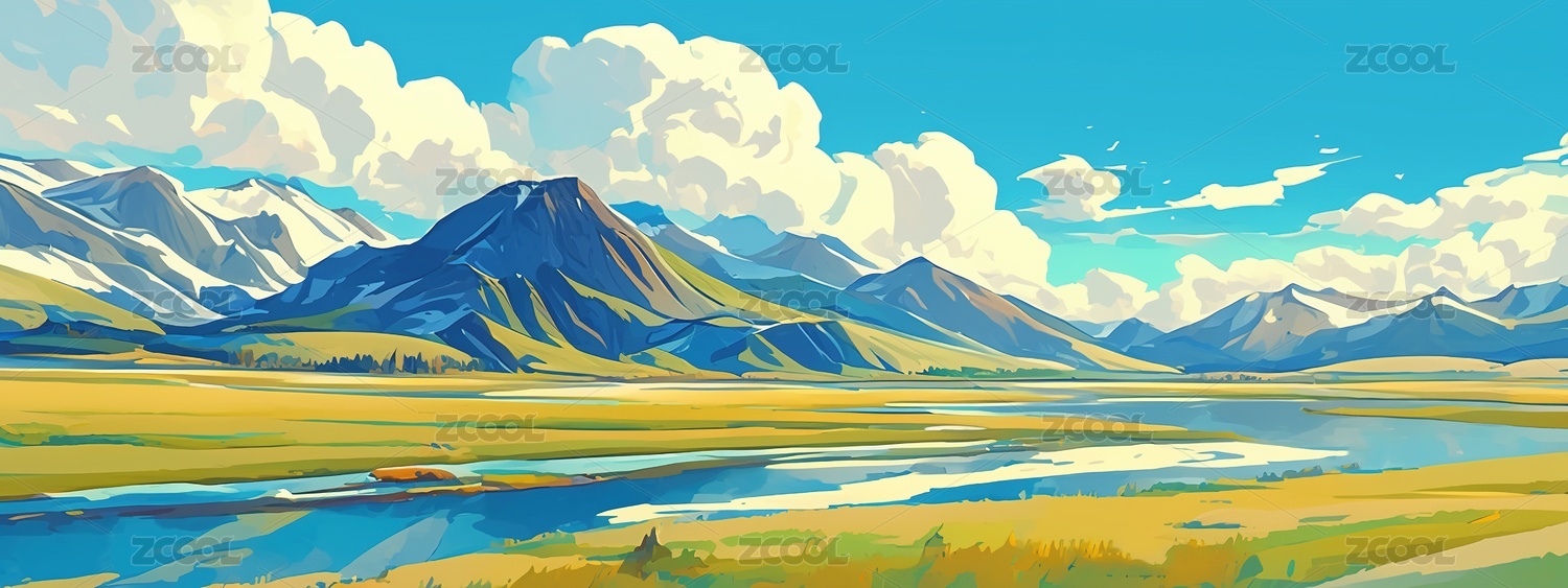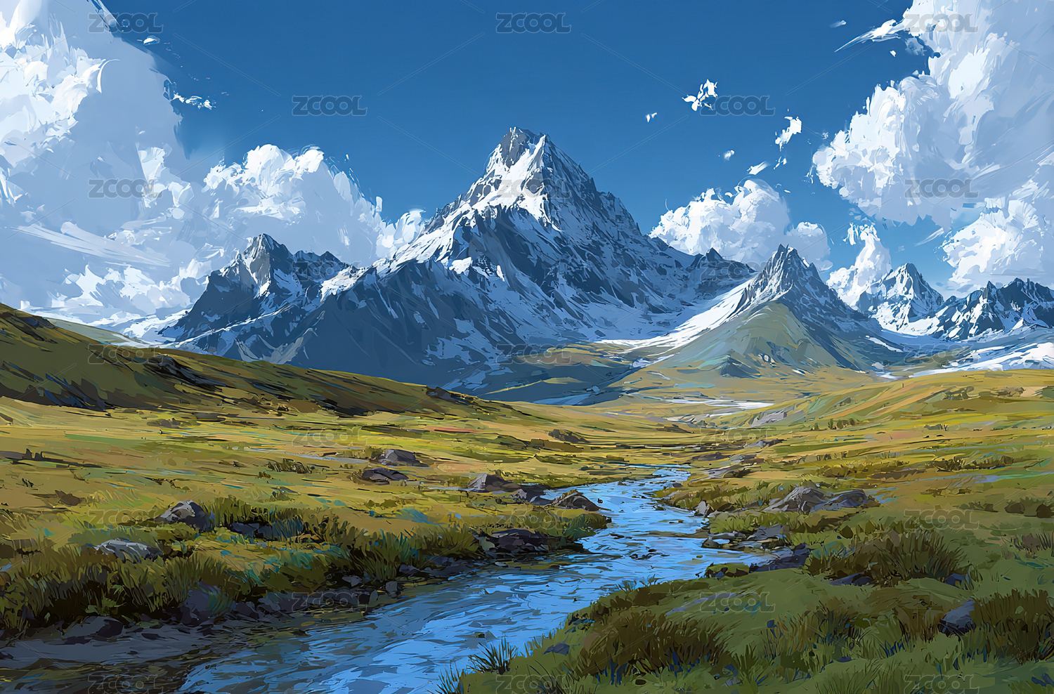宁静,自然,景色,山谷,山脉,壁纸,高清,绘画,背景,艺术