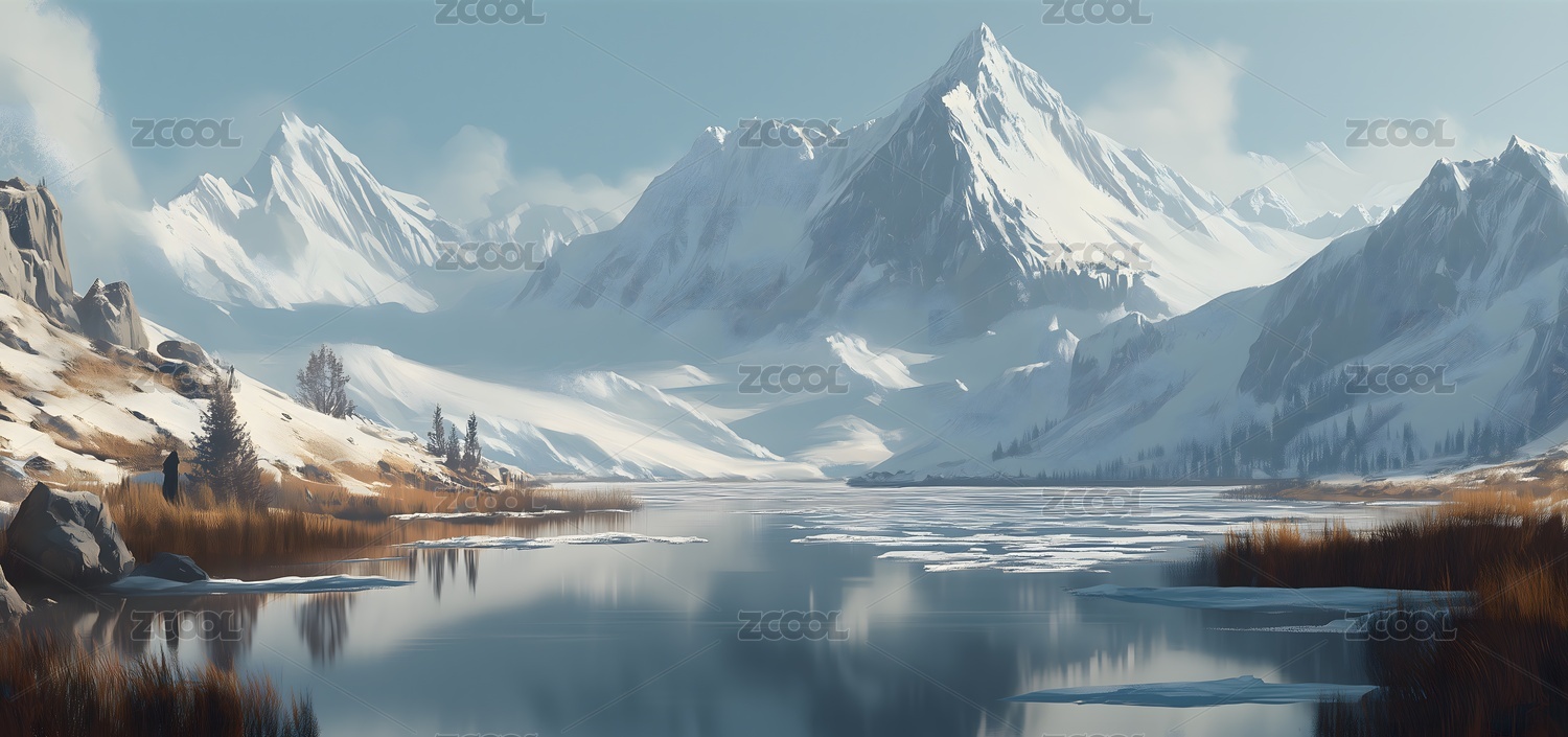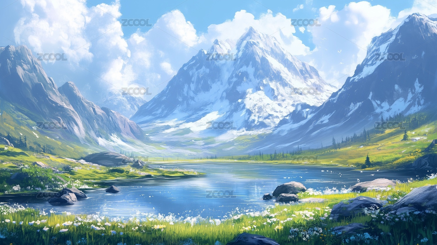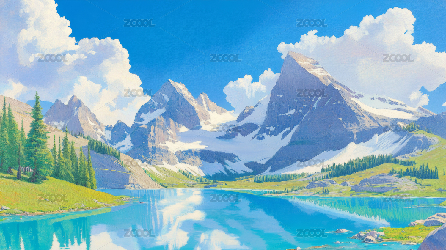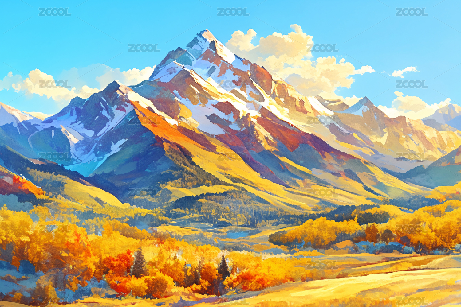 宁静,自然,景色,山谷,山脉,壁纸,高清,绘画,背景,艺术