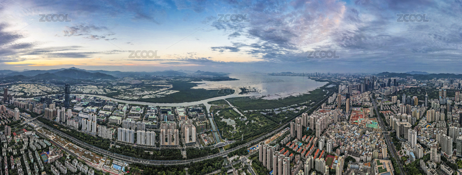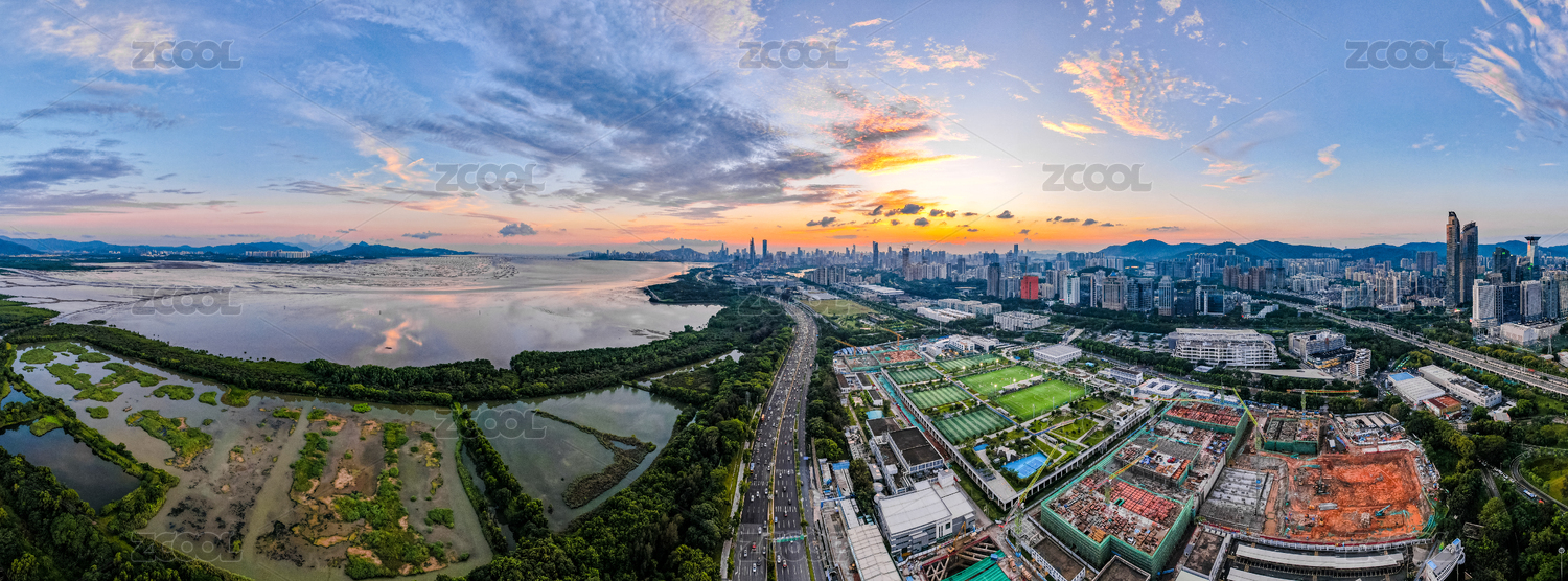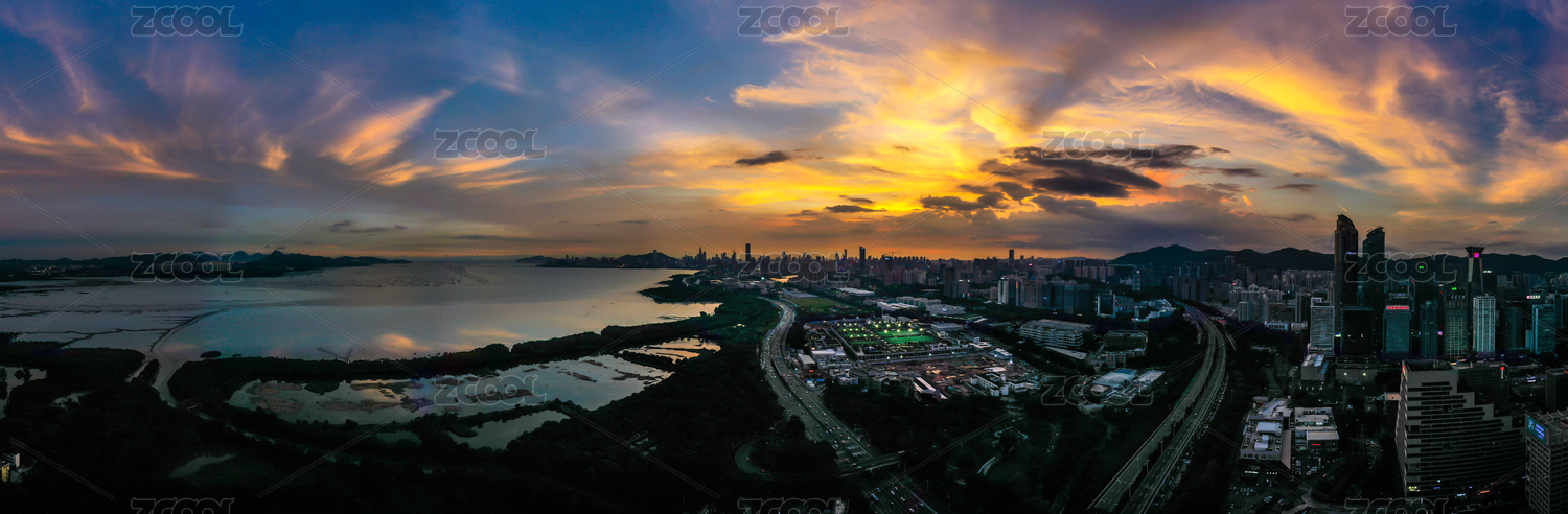 中国,深圳市,深圳湾,晚霞,落日,海边,城市