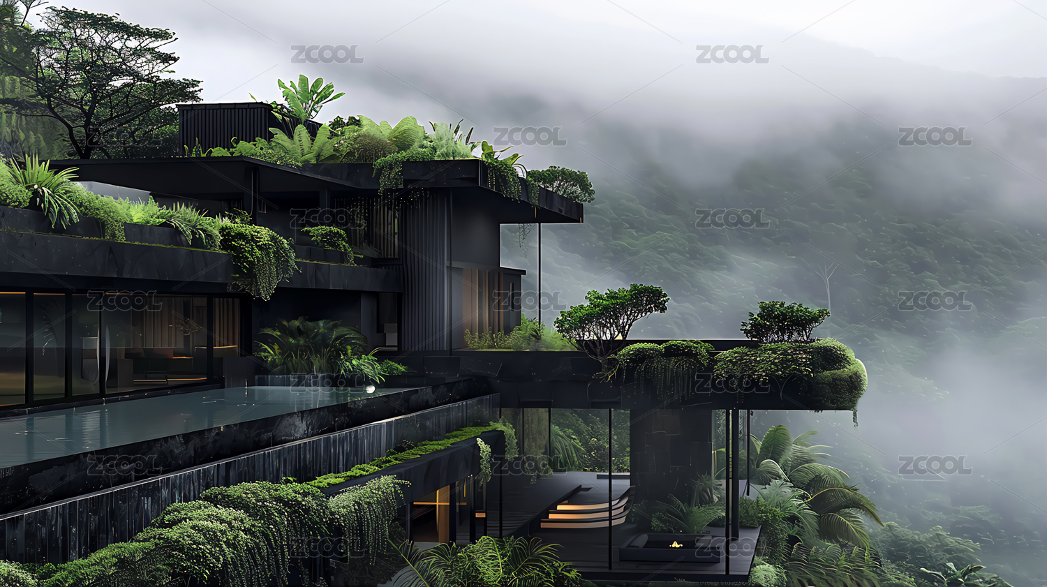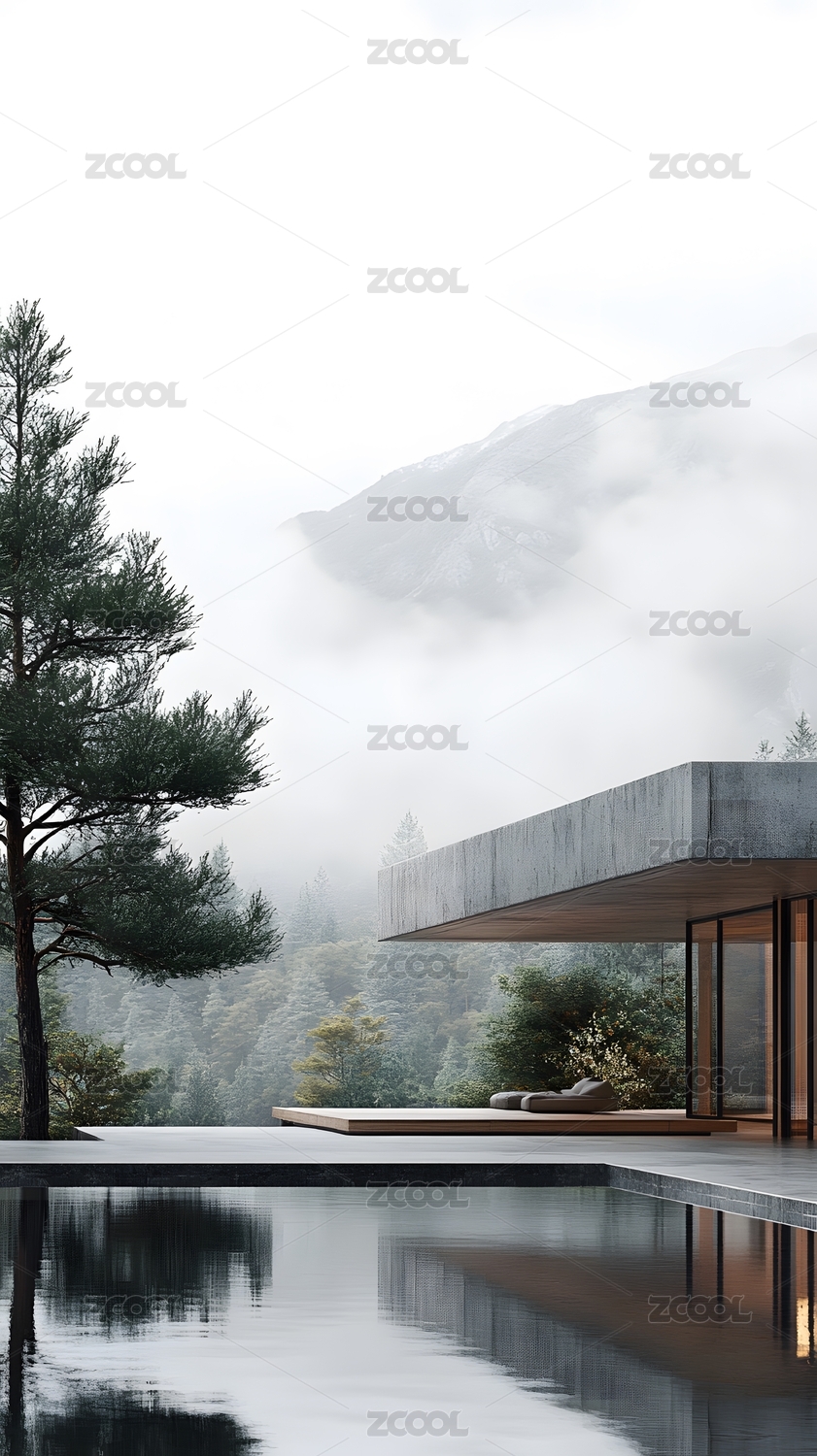 山峰景观现代建筑空间场景